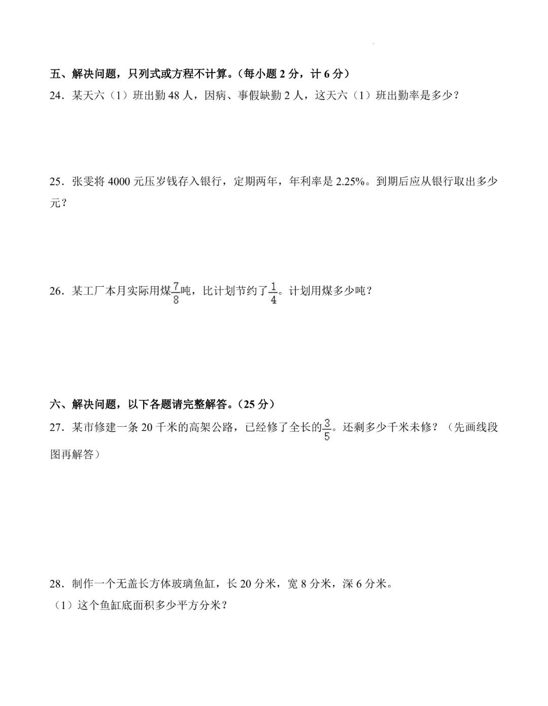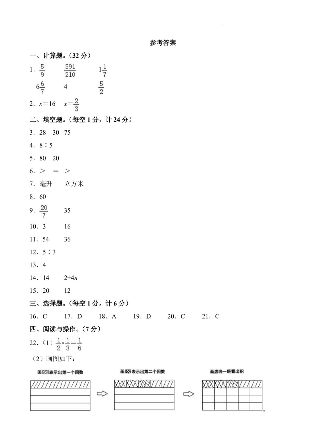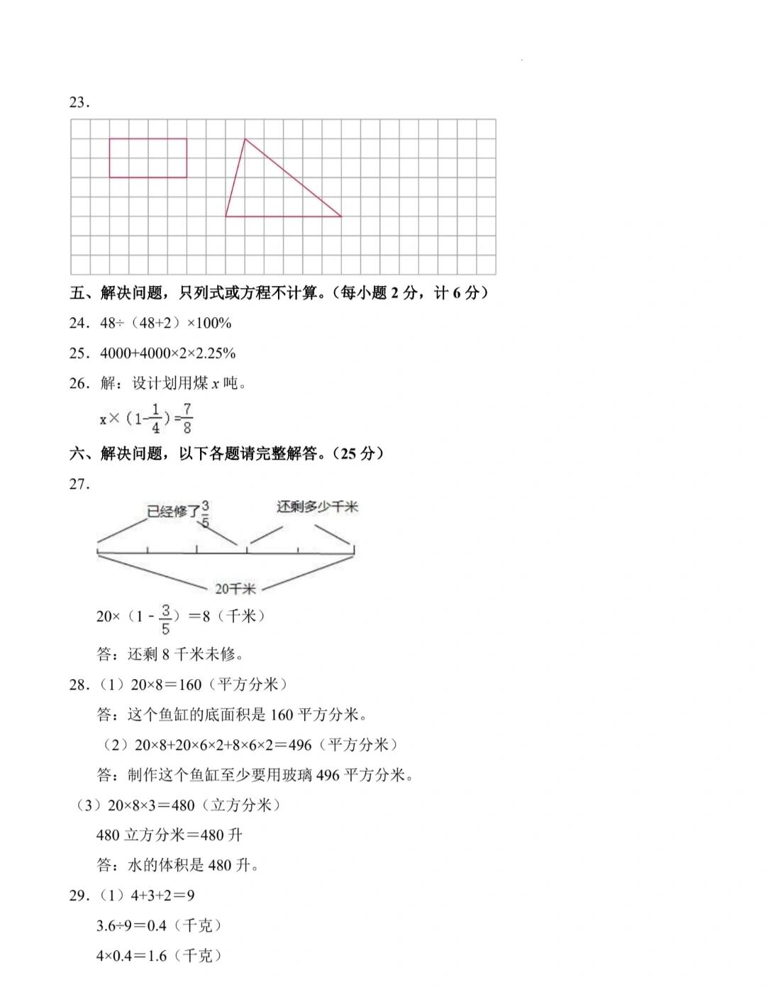 2023-2024学年鼓楼区六年级期末数学试卷题目及答案