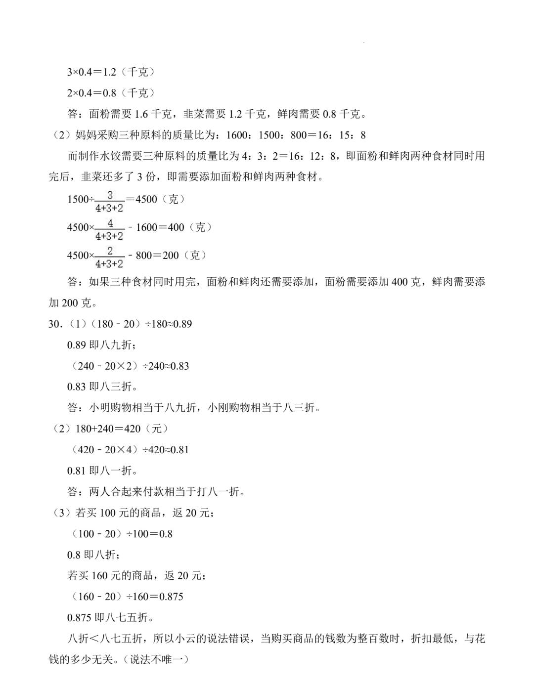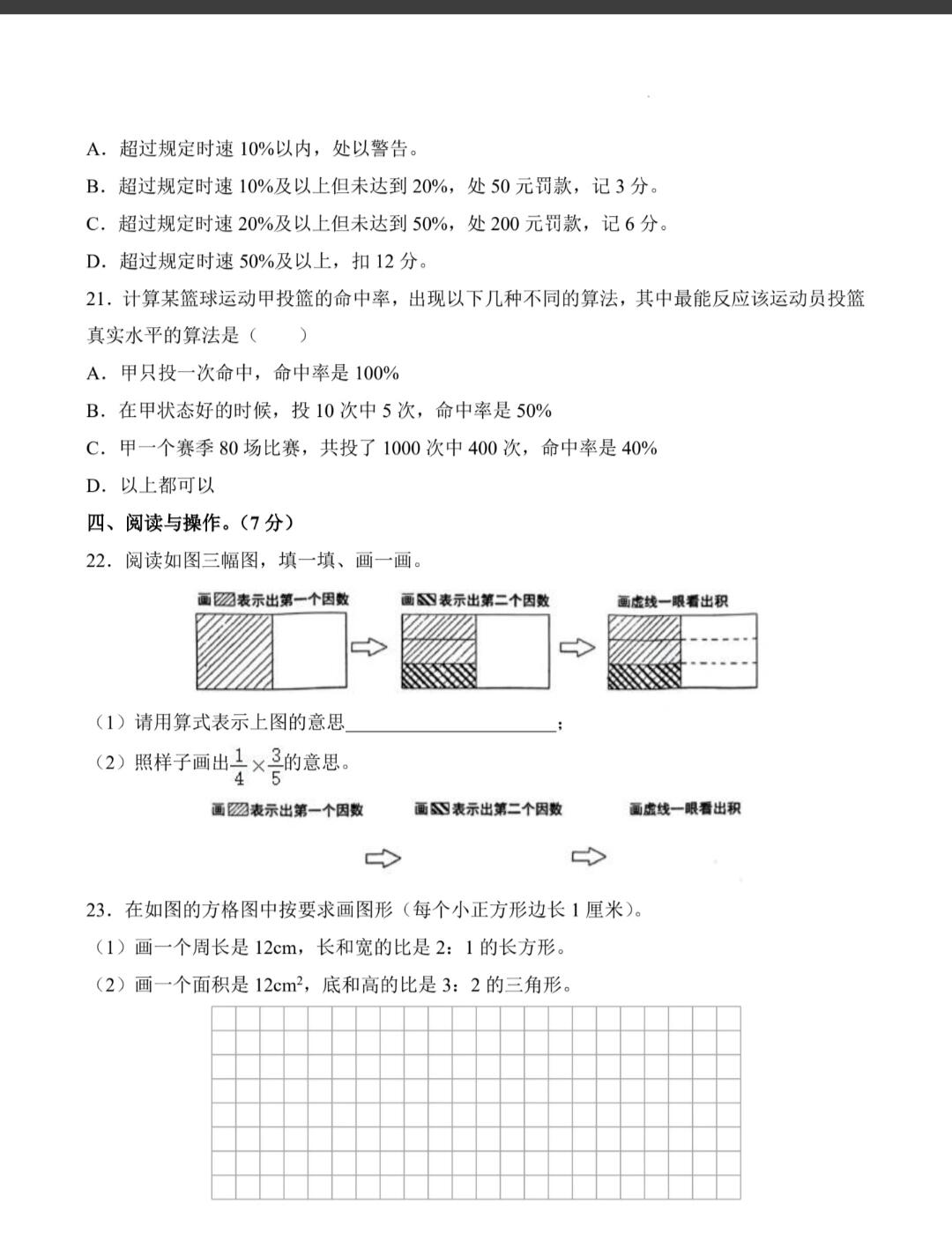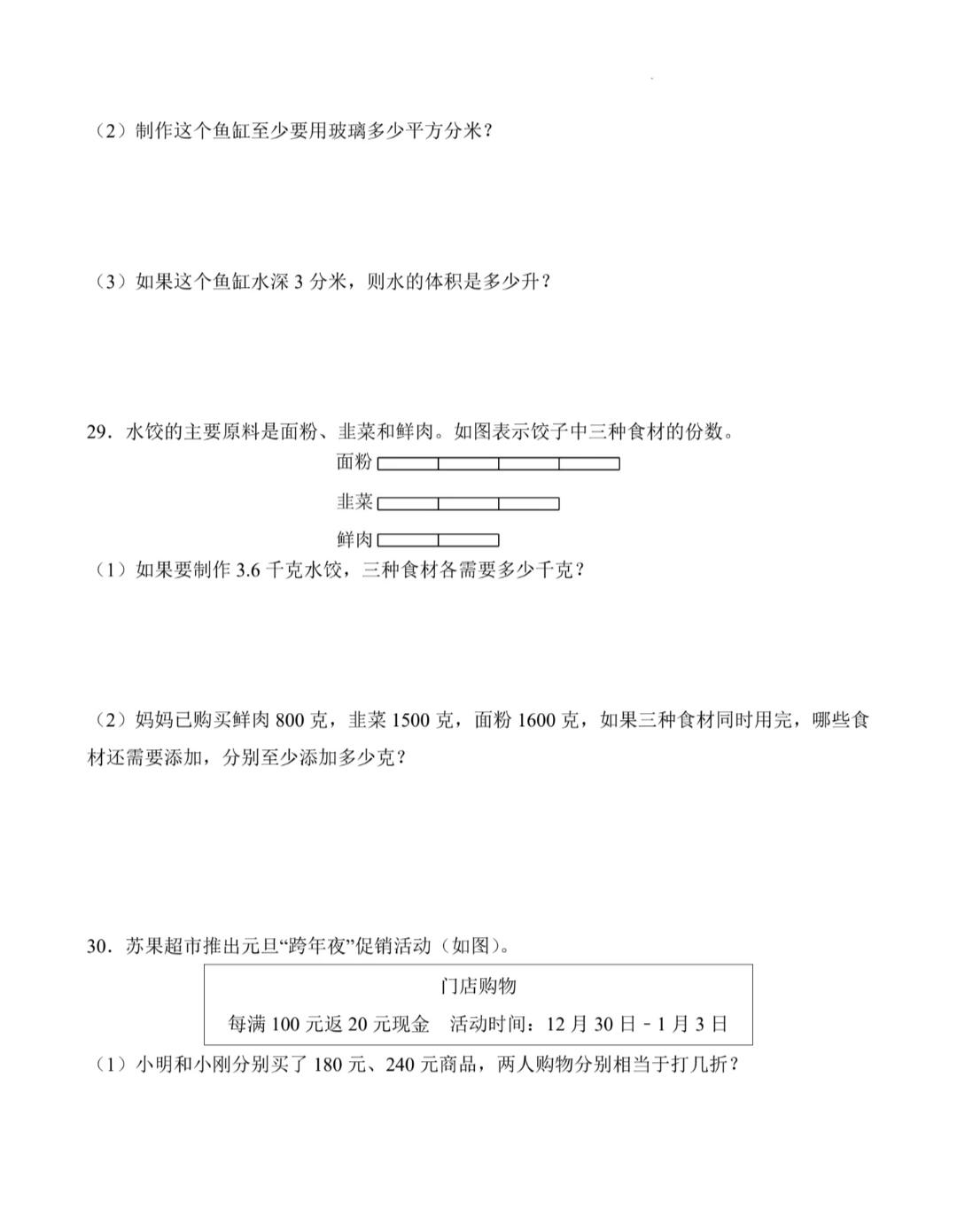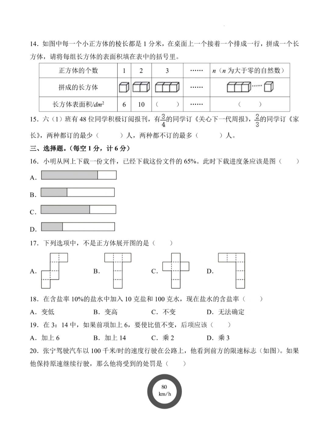 2023-2024学年鼓楼区六年级期末数学试卷题目及答案