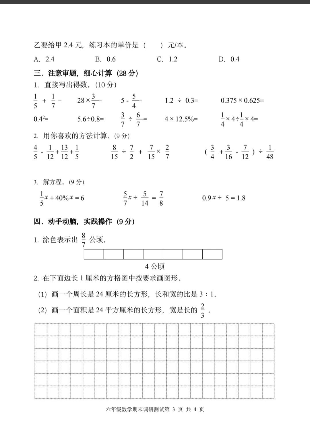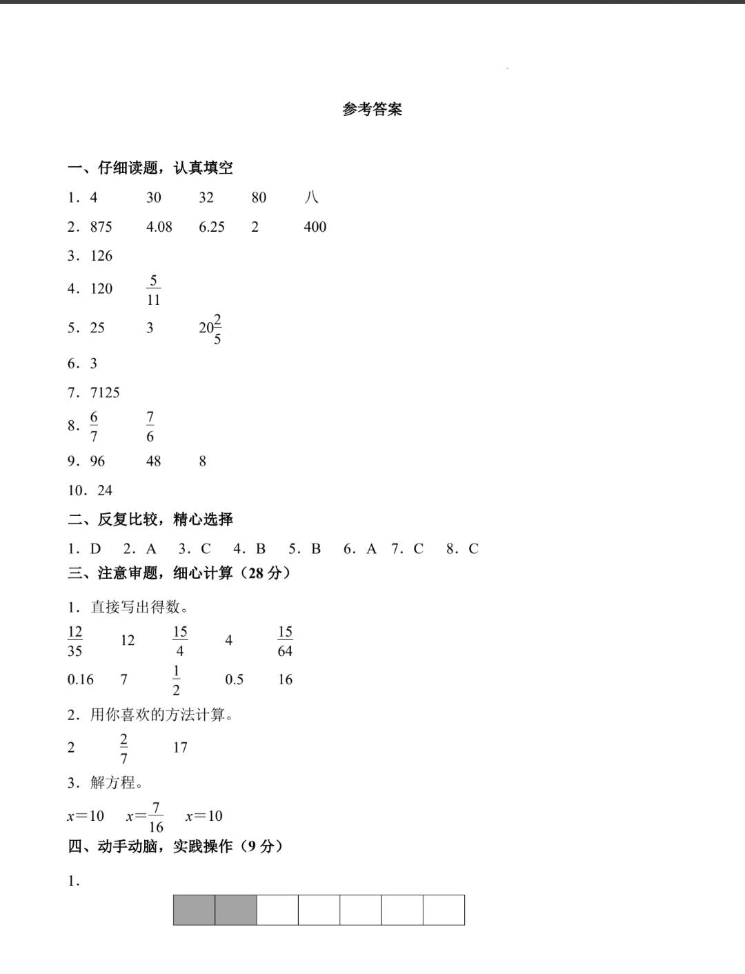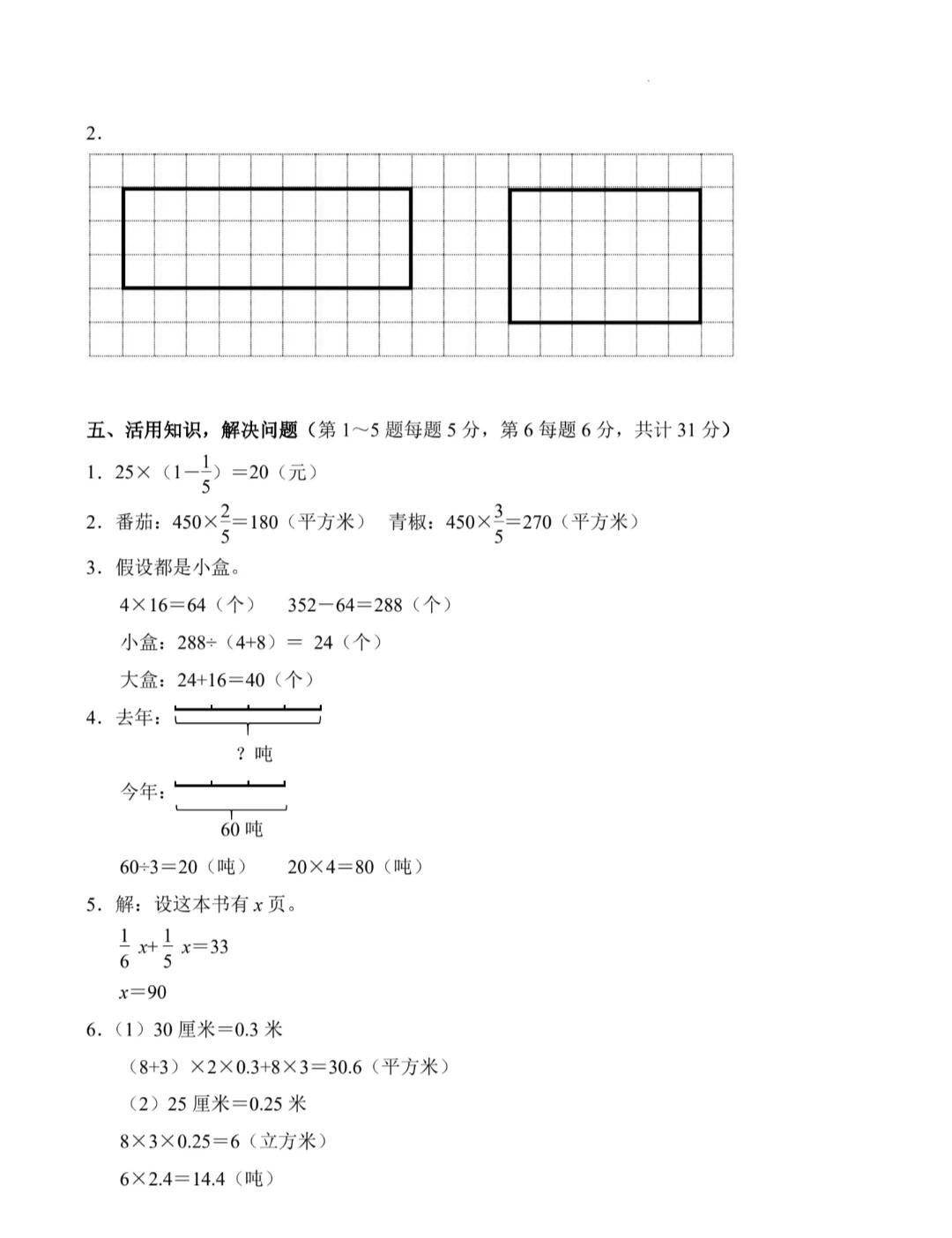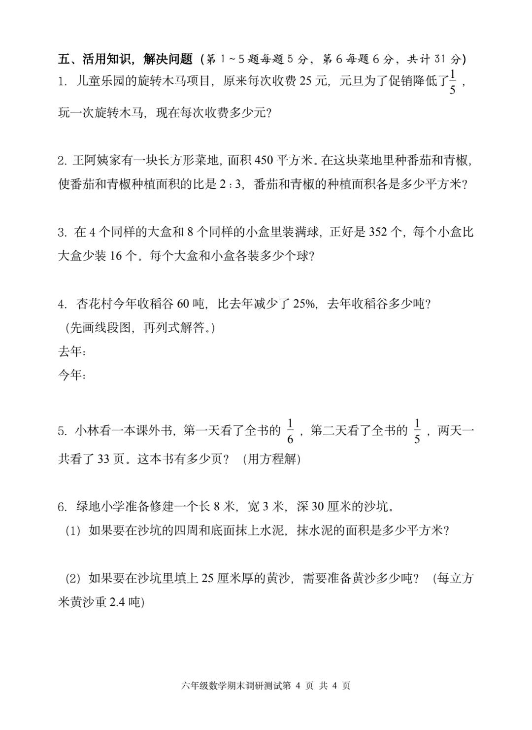 苏教版小学数学六年级上册期末调研卷题目及答案