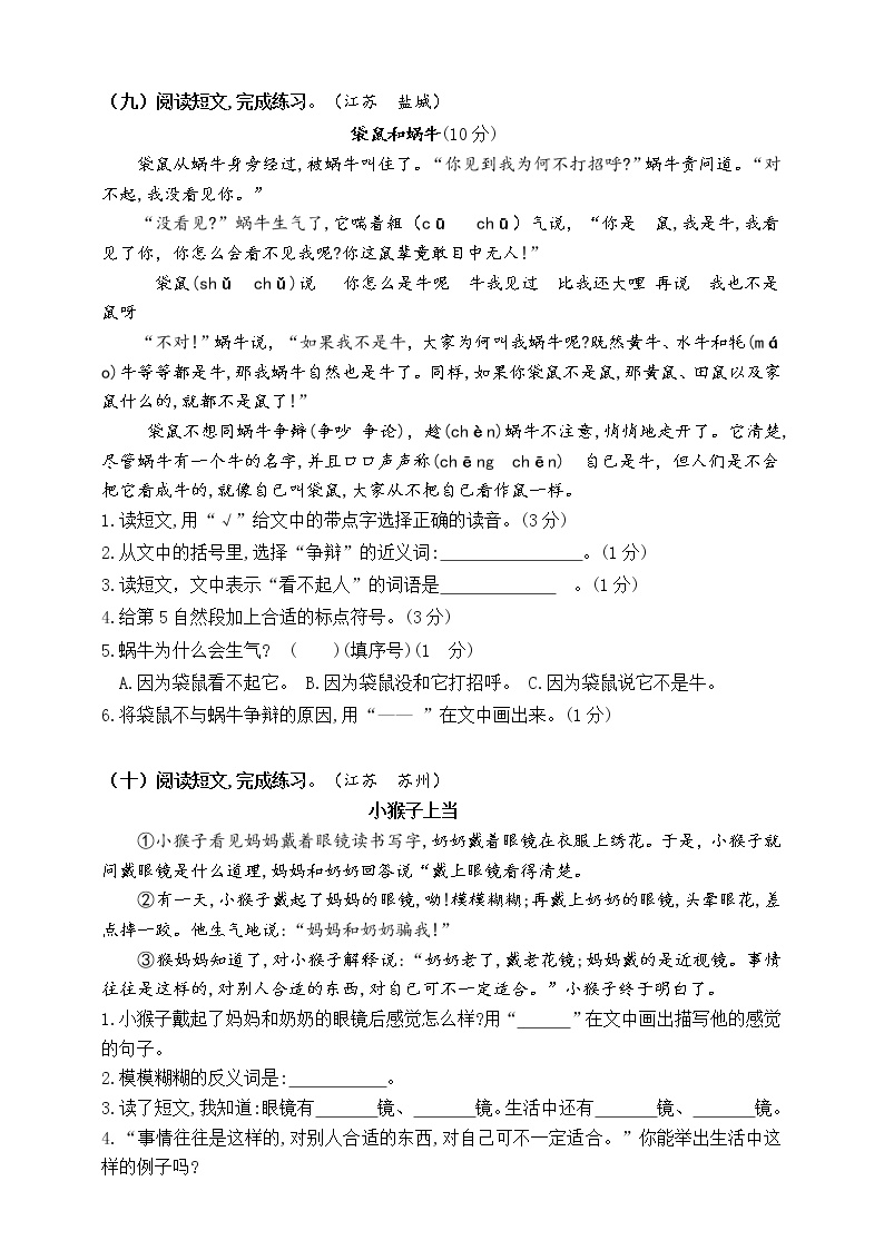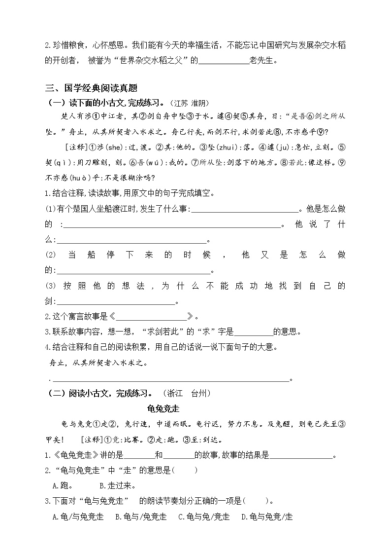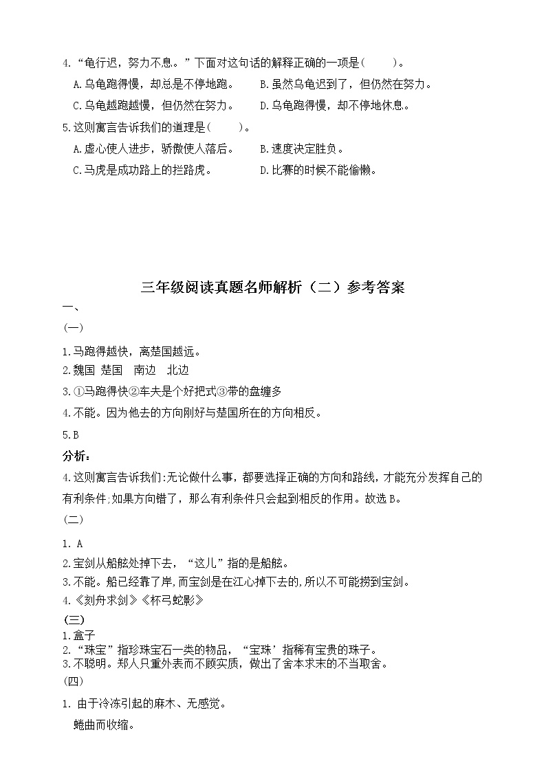 (同步提优、寒假拔尖)部编版三语下第二单元各类阅读真题(含小古文、非连续性文本等)名师解析连载