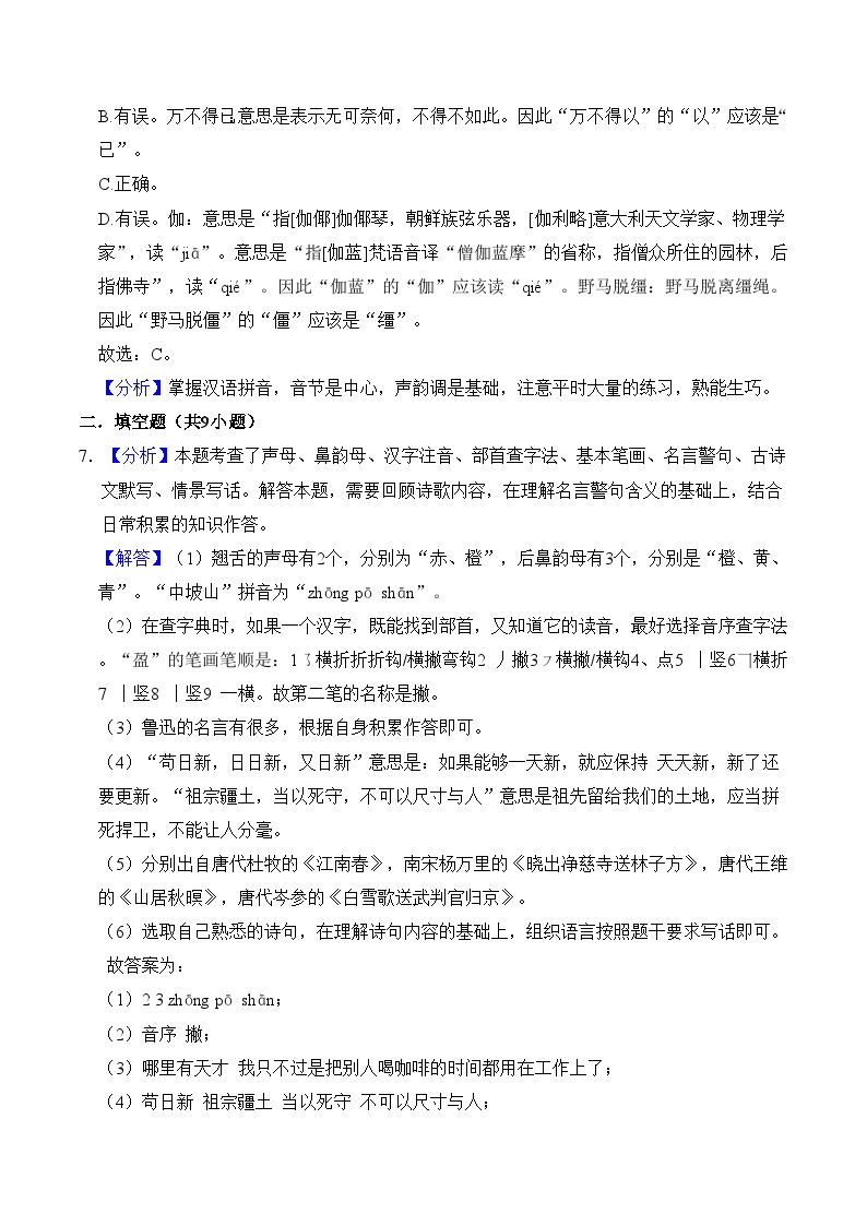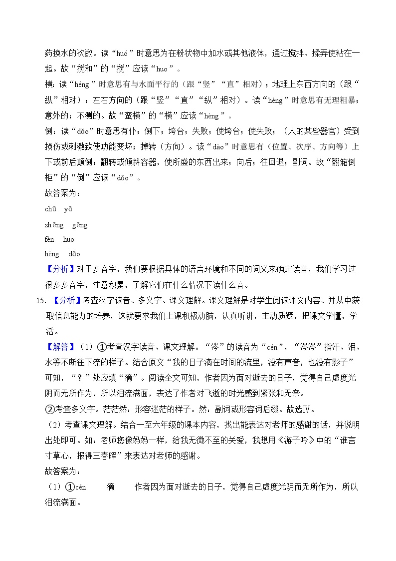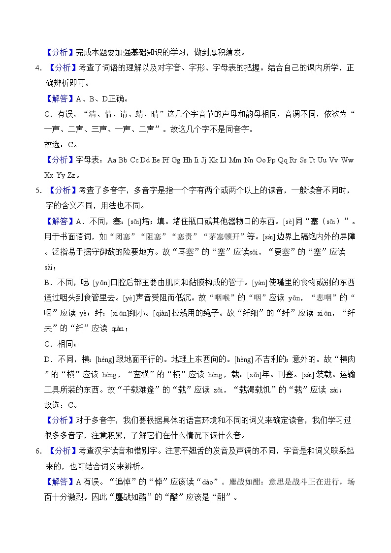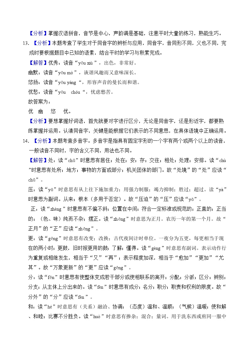 【小升初语文真题】专题01++拼音-2024小升初语文专项复习