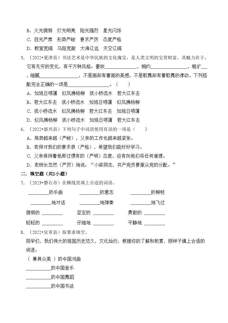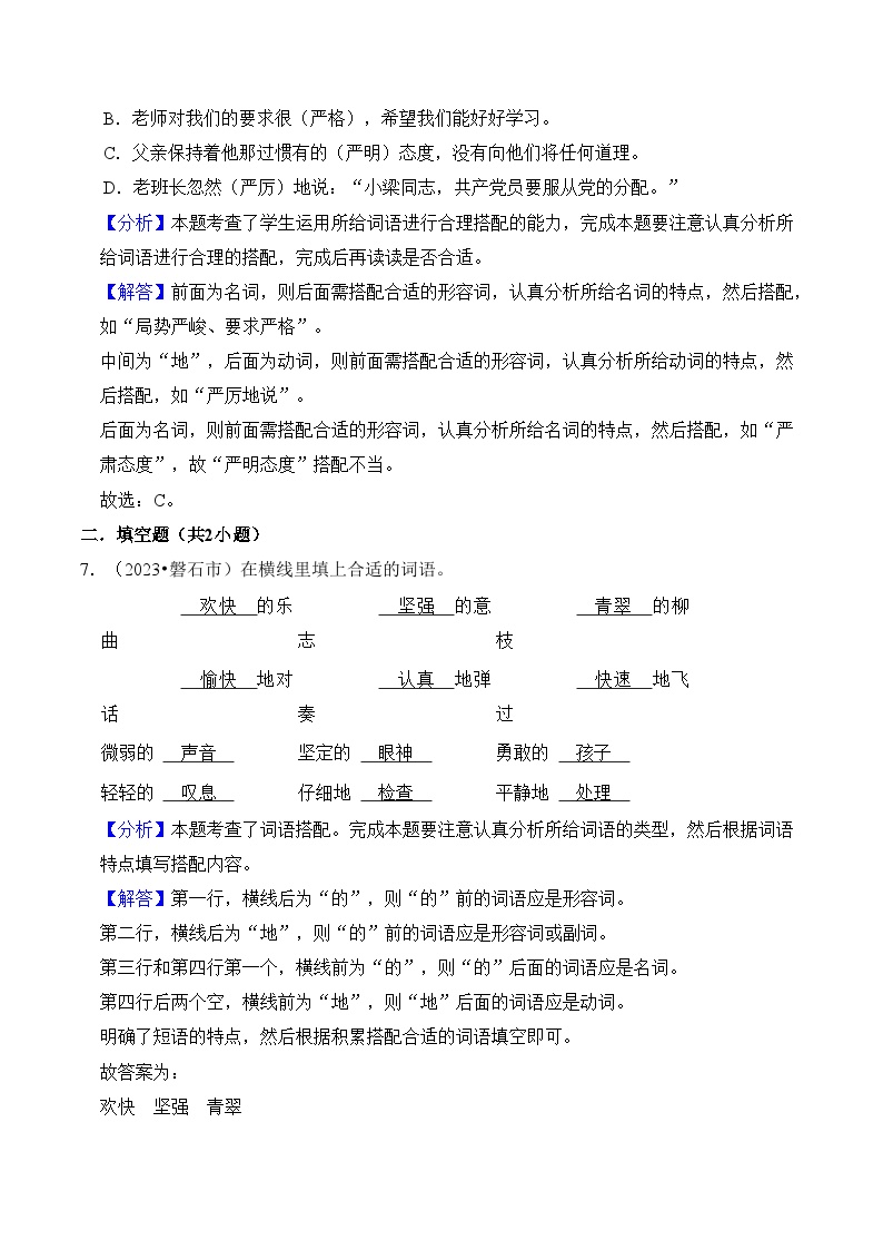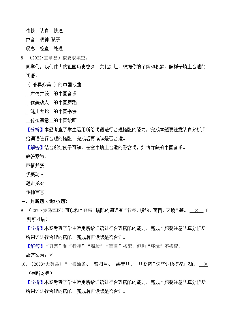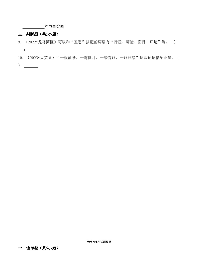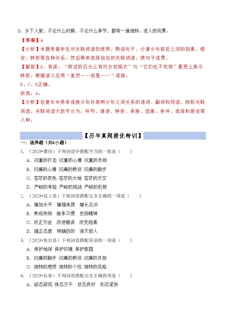 【小升初语文真题】专题05++词语的搭配与运用-2024小升初语文专项复习