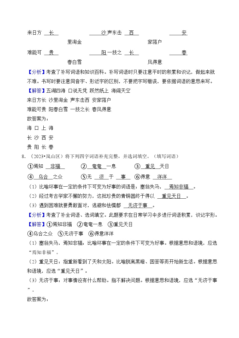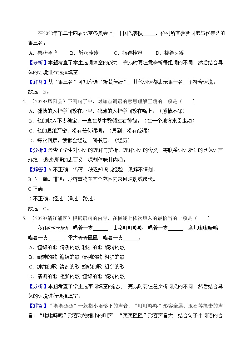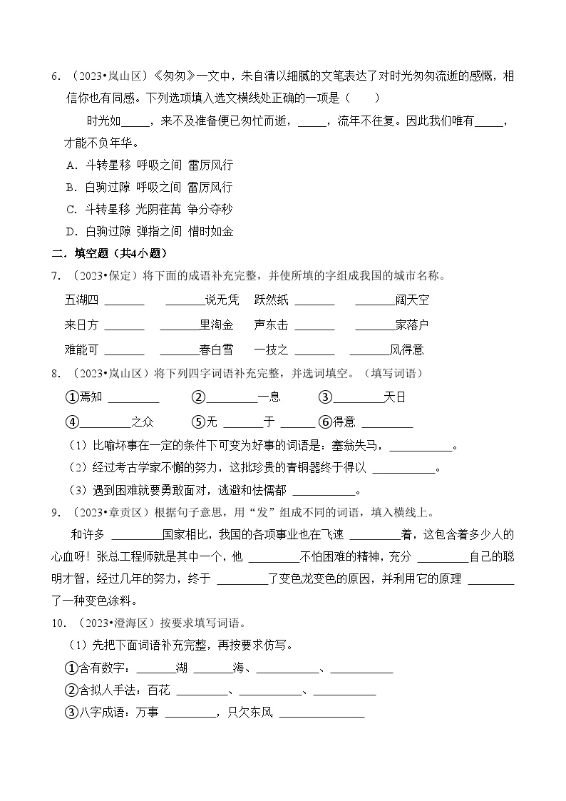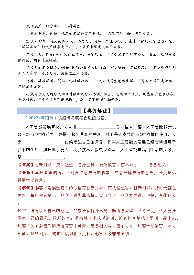 【小升初语文真题】专题06成语的积累与运用-2024小升初语文专项复习