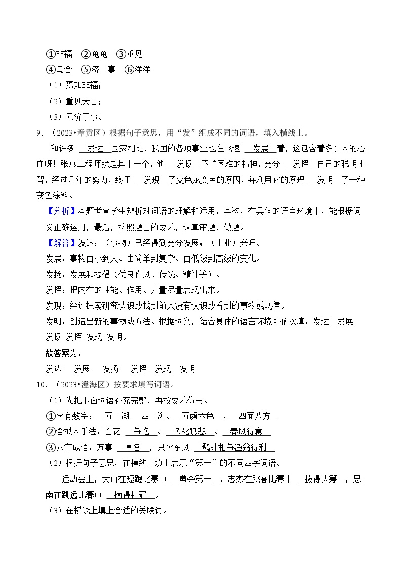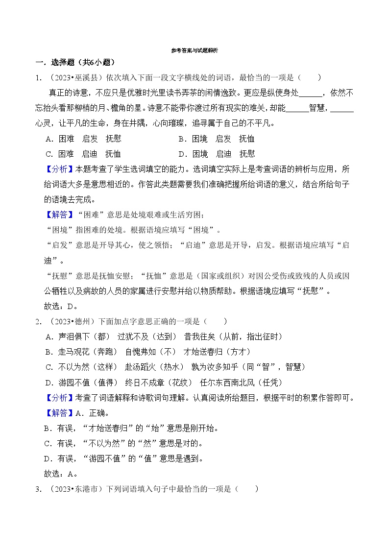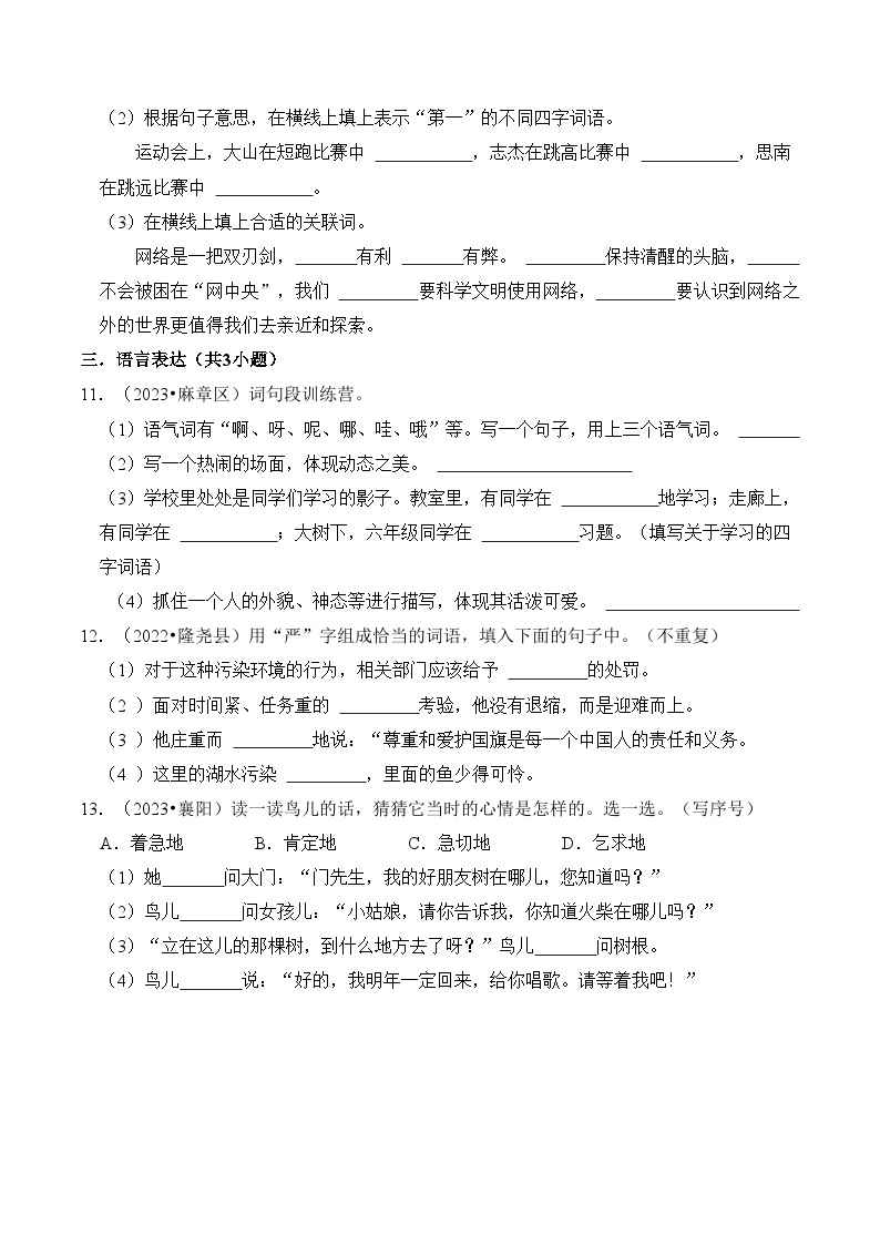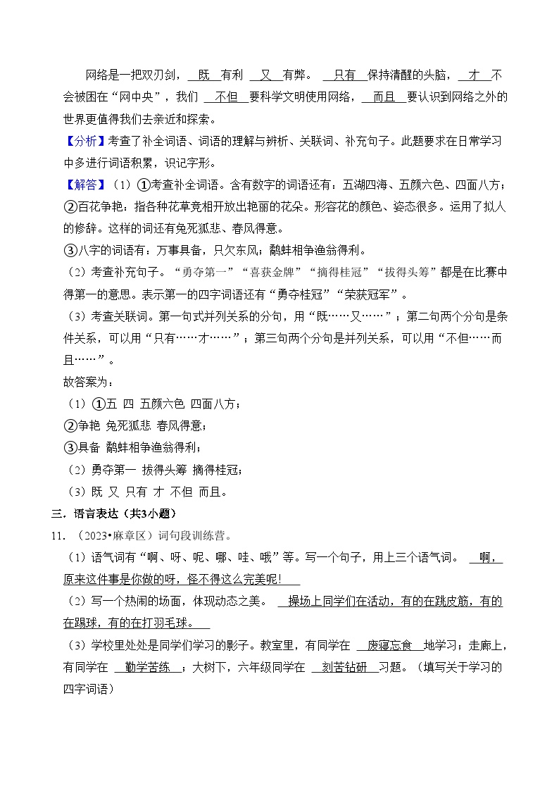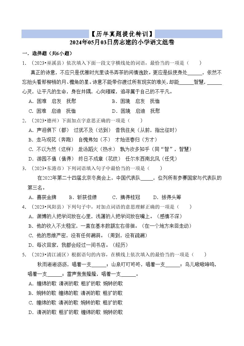 【小升初语文真题】专题06成语的积累与运用-2024小升初语文专项复习