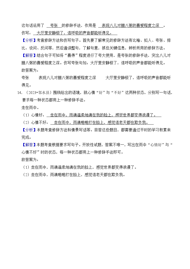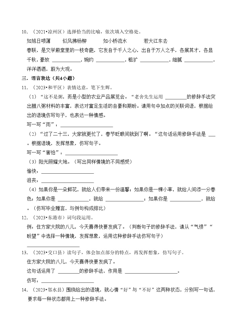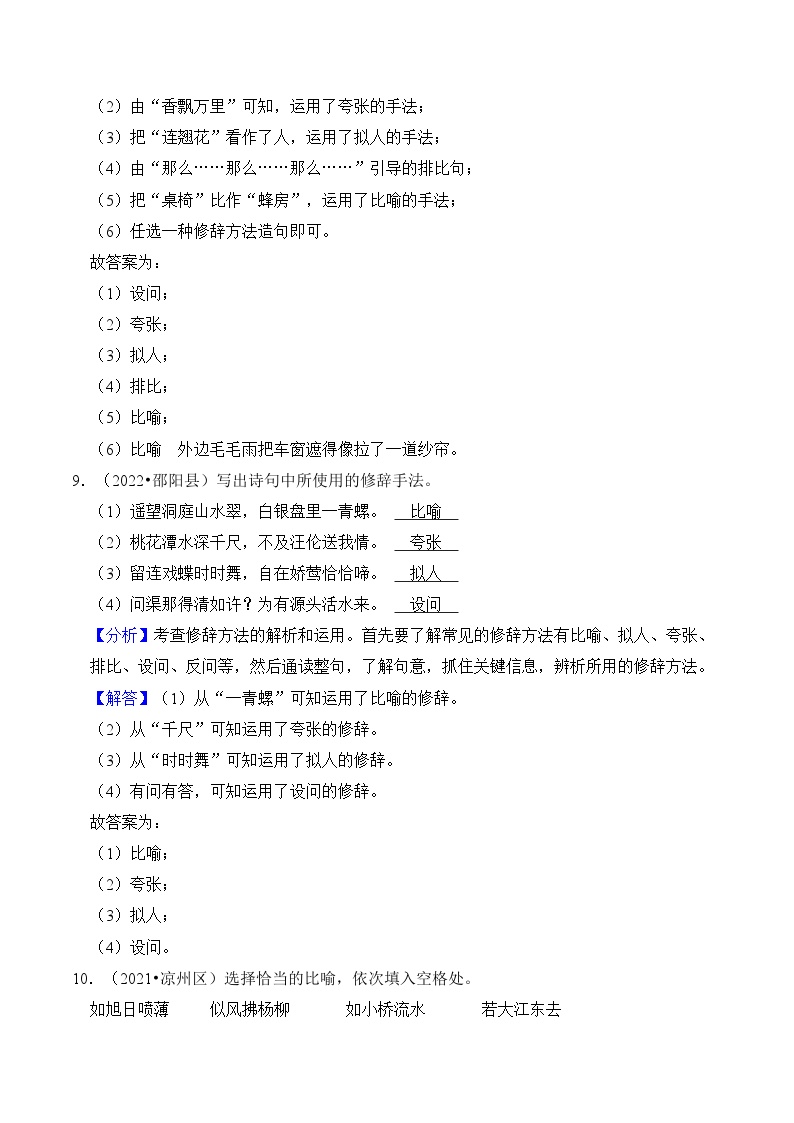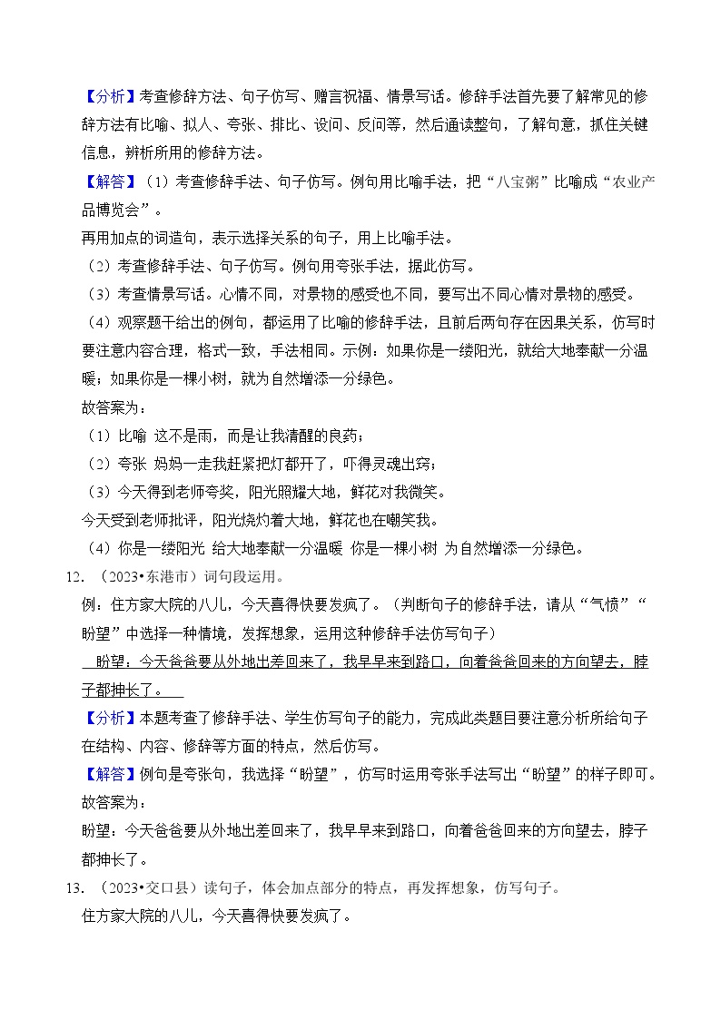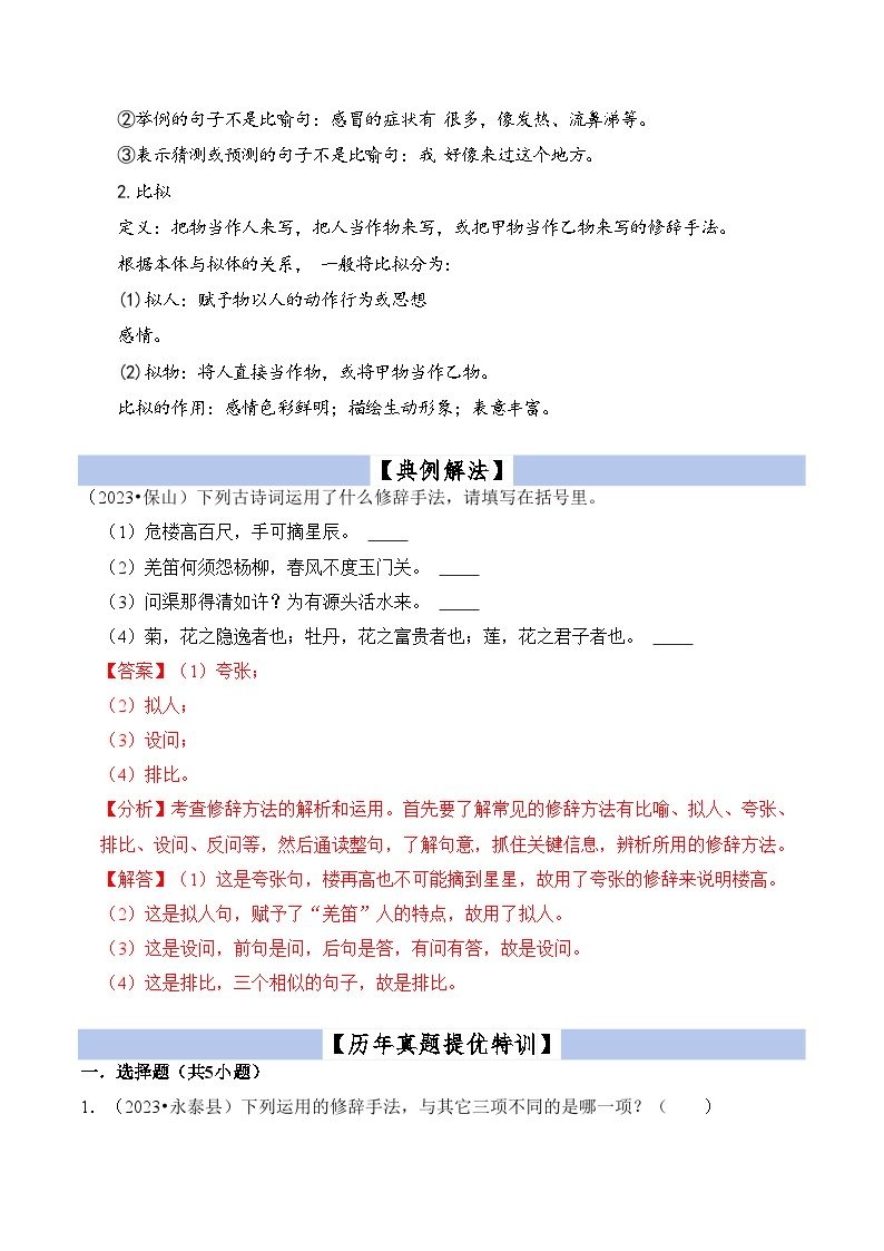 【小升初语文真题】专题12++修辞手法-2024小升初语文专项复习