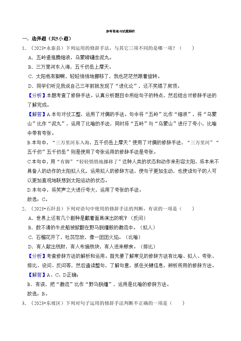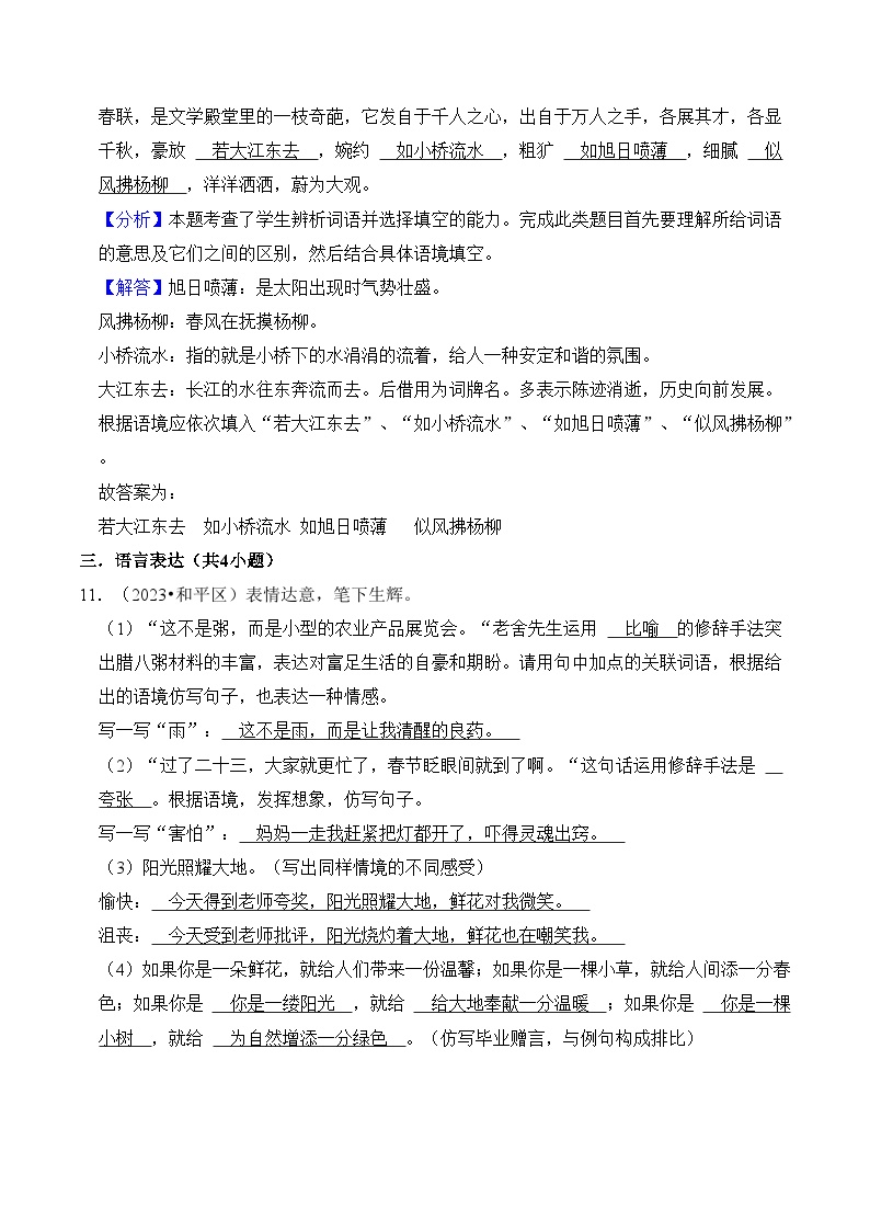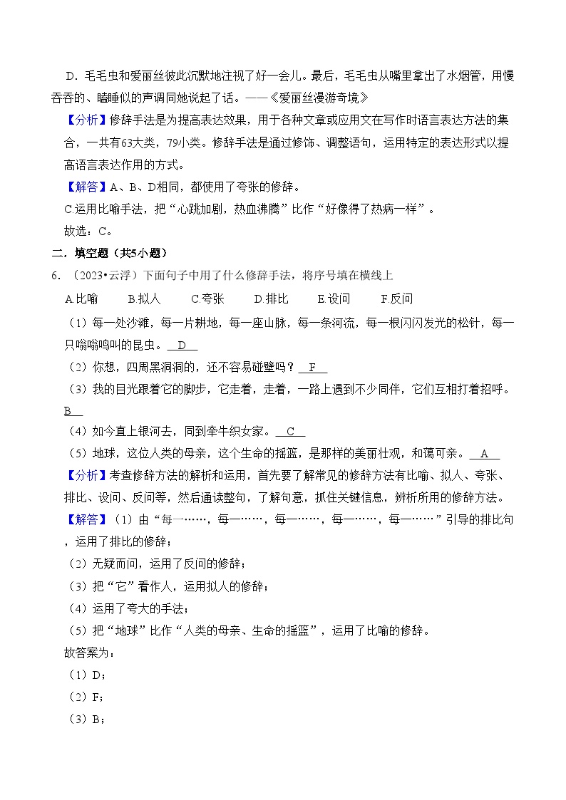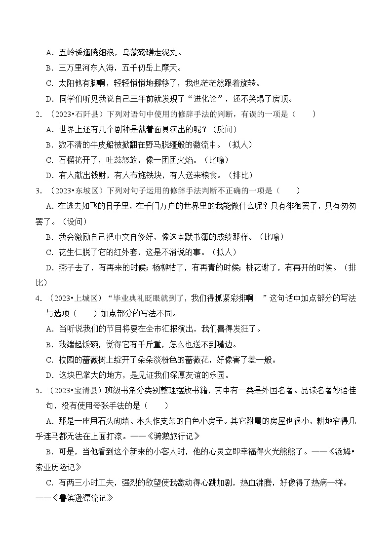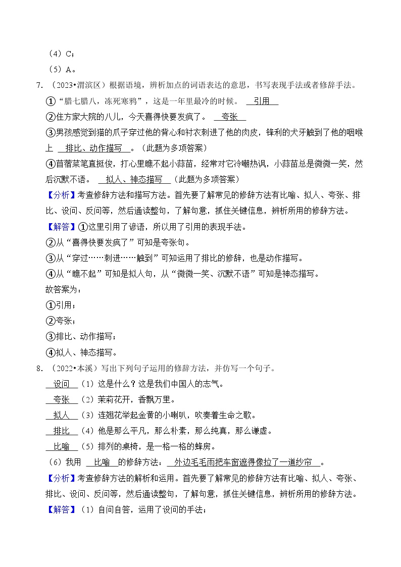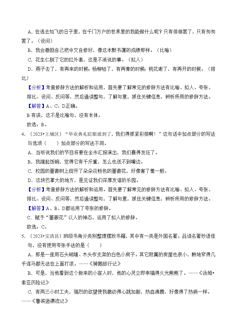 【小升初语文真题】专题12++修辞手法-2024小升初语文专项复习