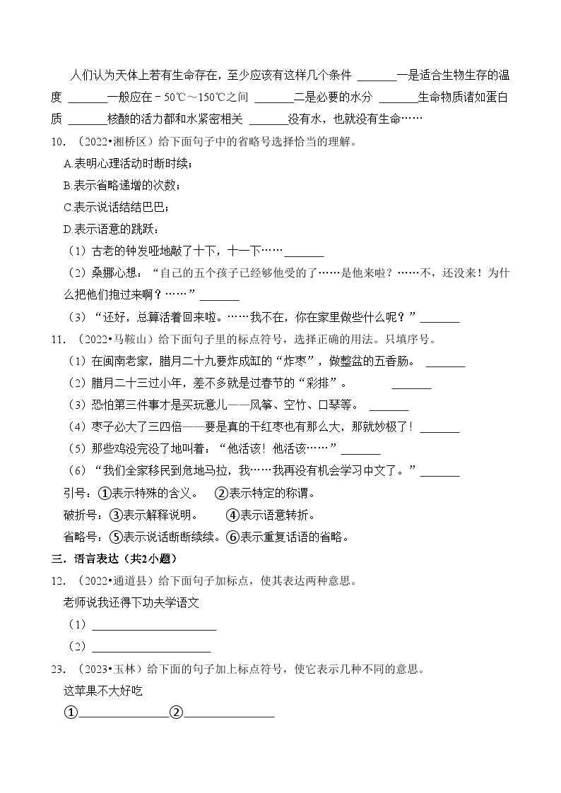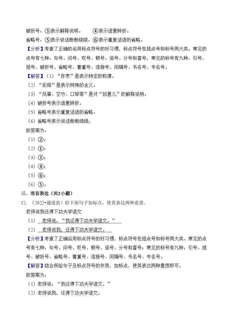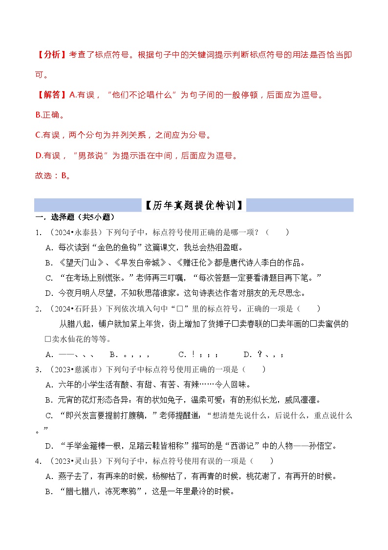 【小升初语文真题】专题13++标点符号-2024小升初语文专项复习