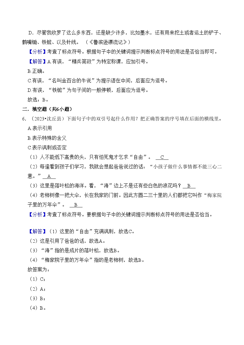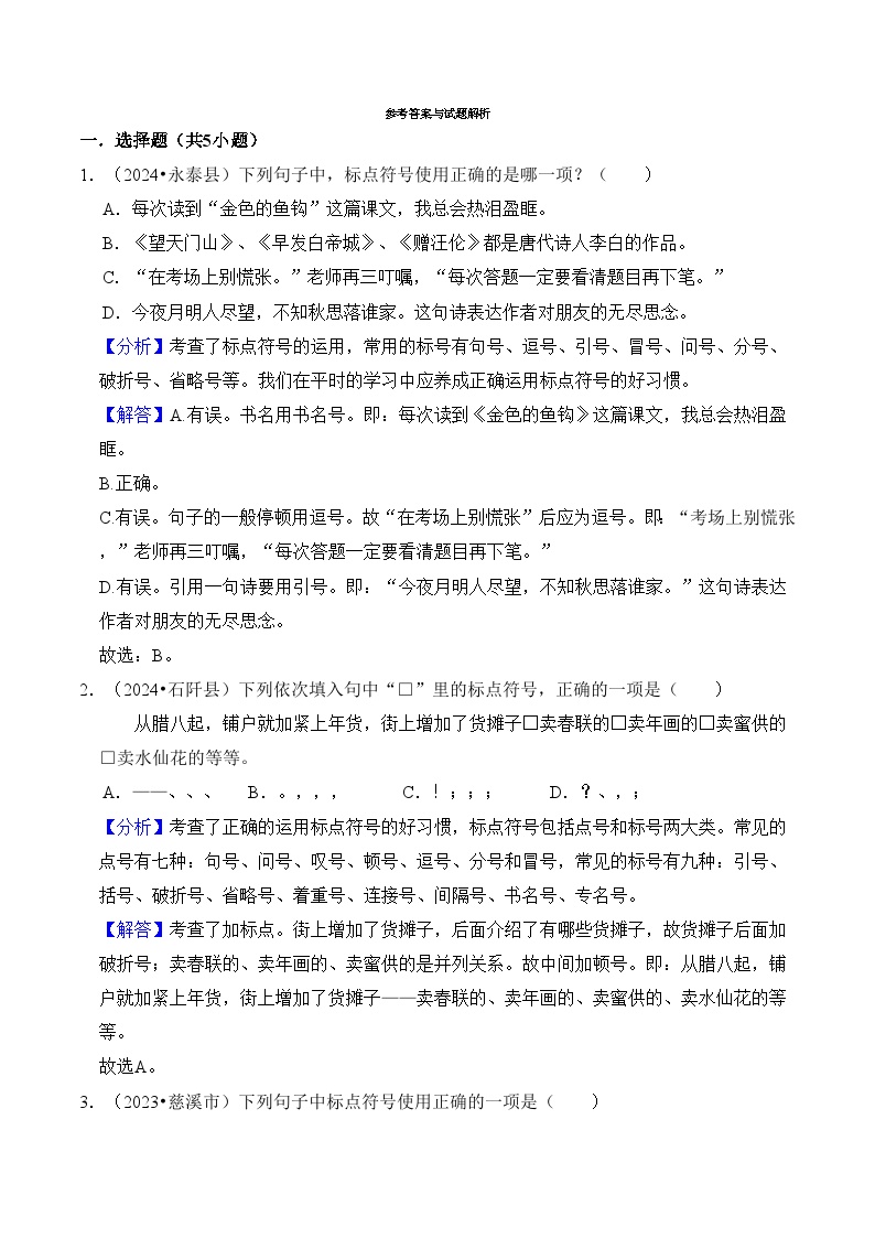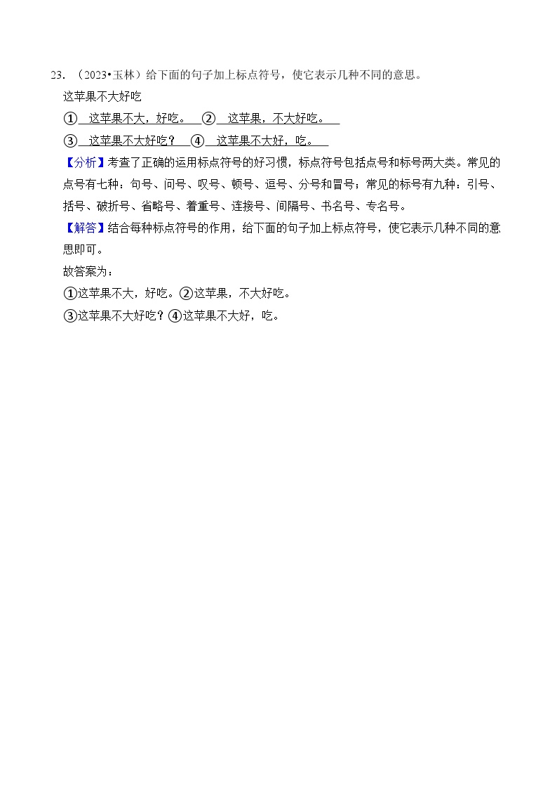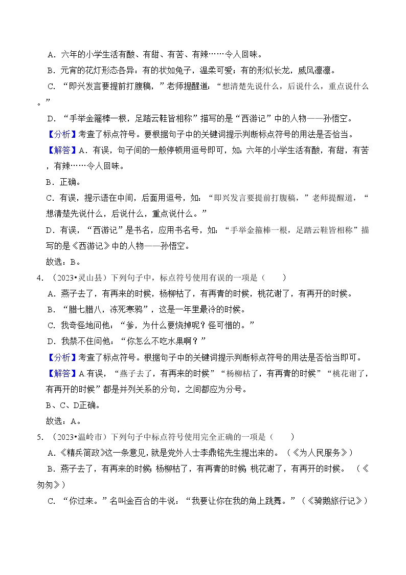 【小升初语文真题】专题13++标点符号-2024小升初语文专项复习
