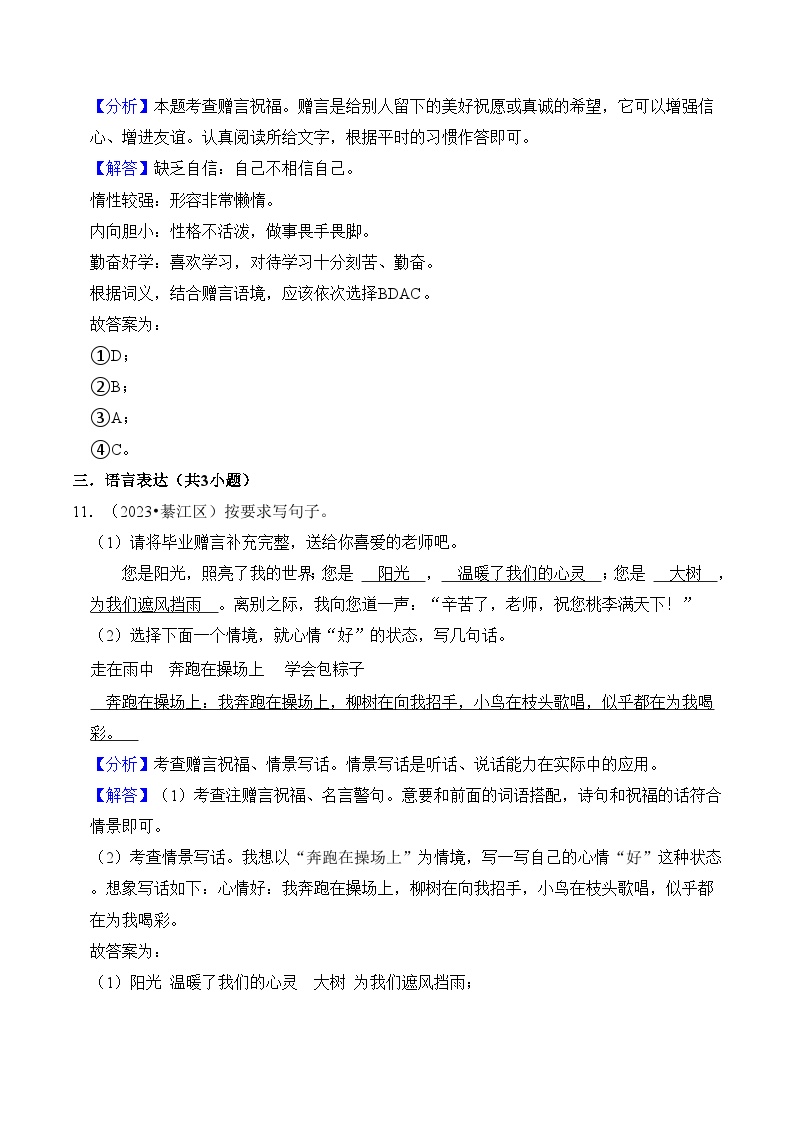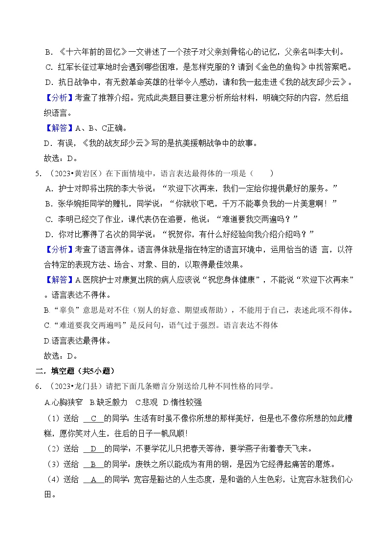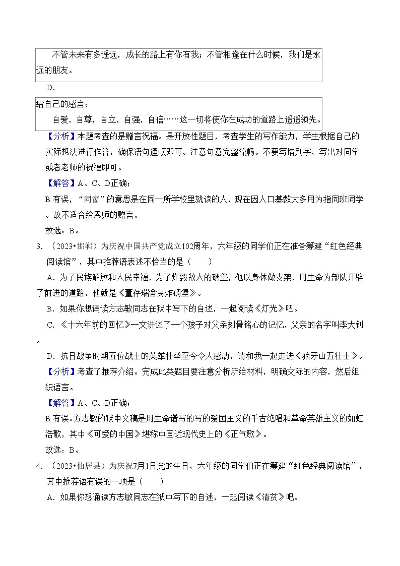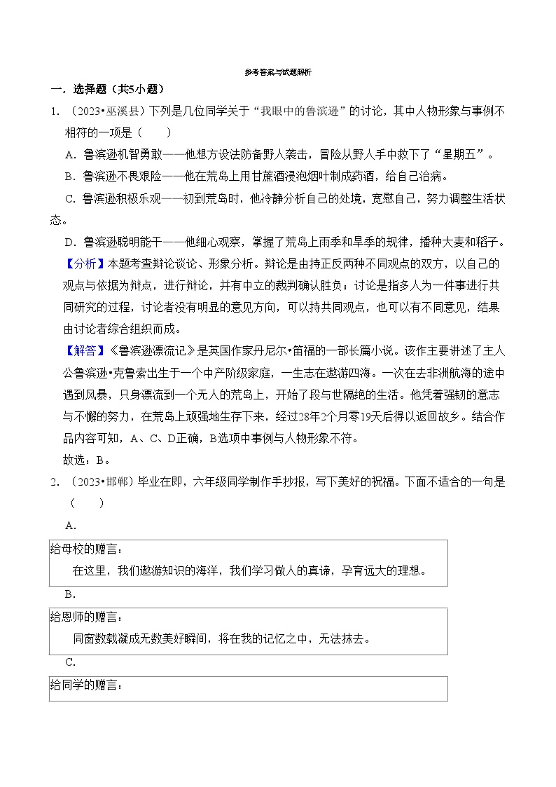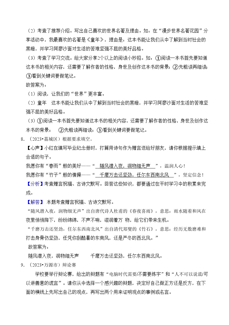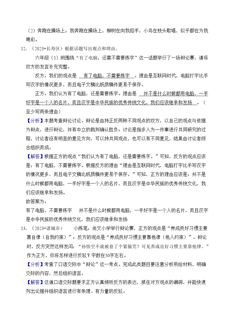 【小升初语文真题】专题14++口语交际-2024小升初语文专项复习