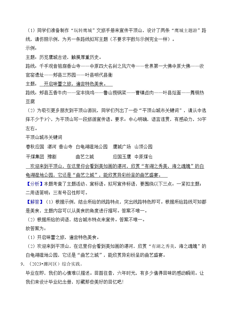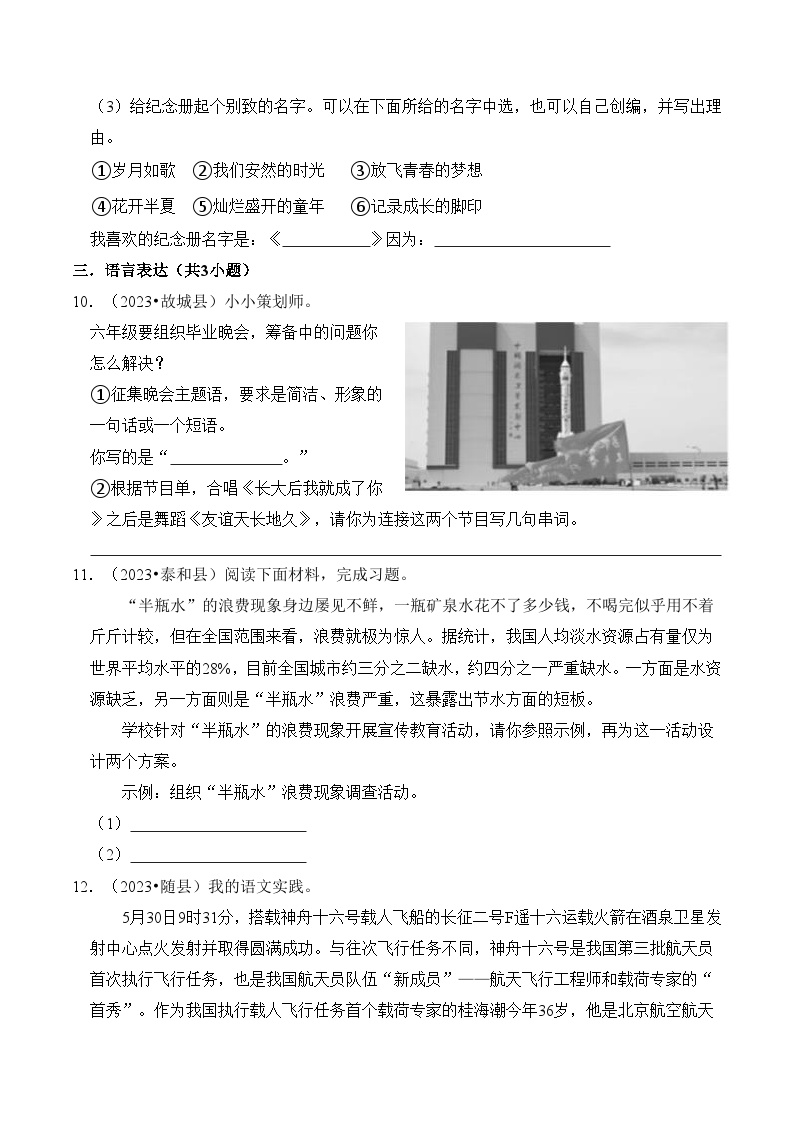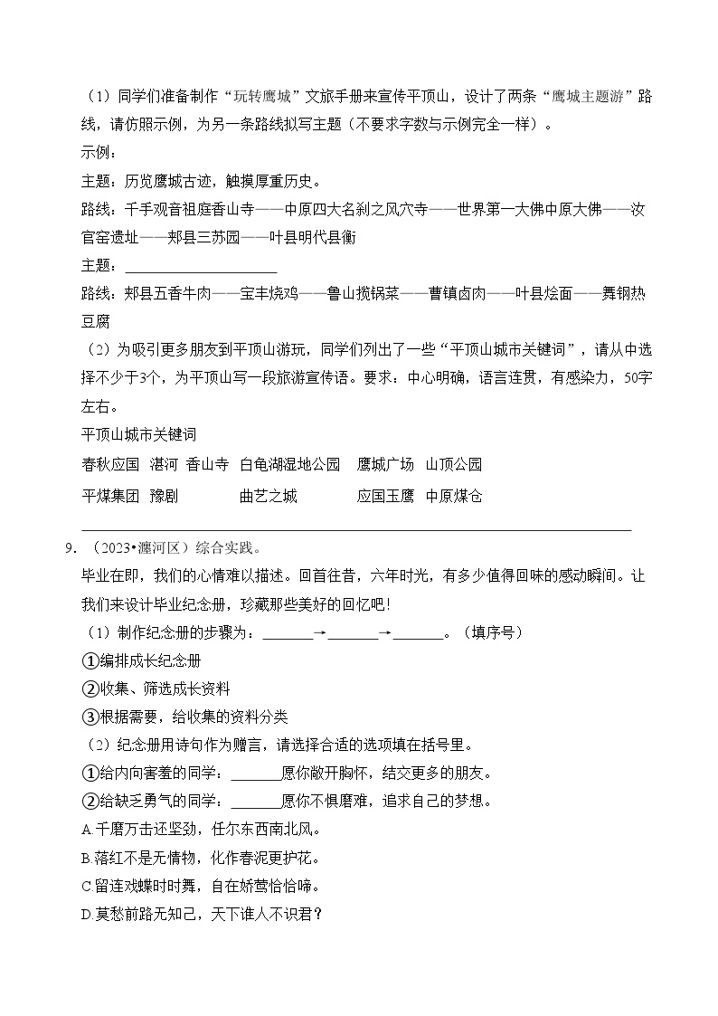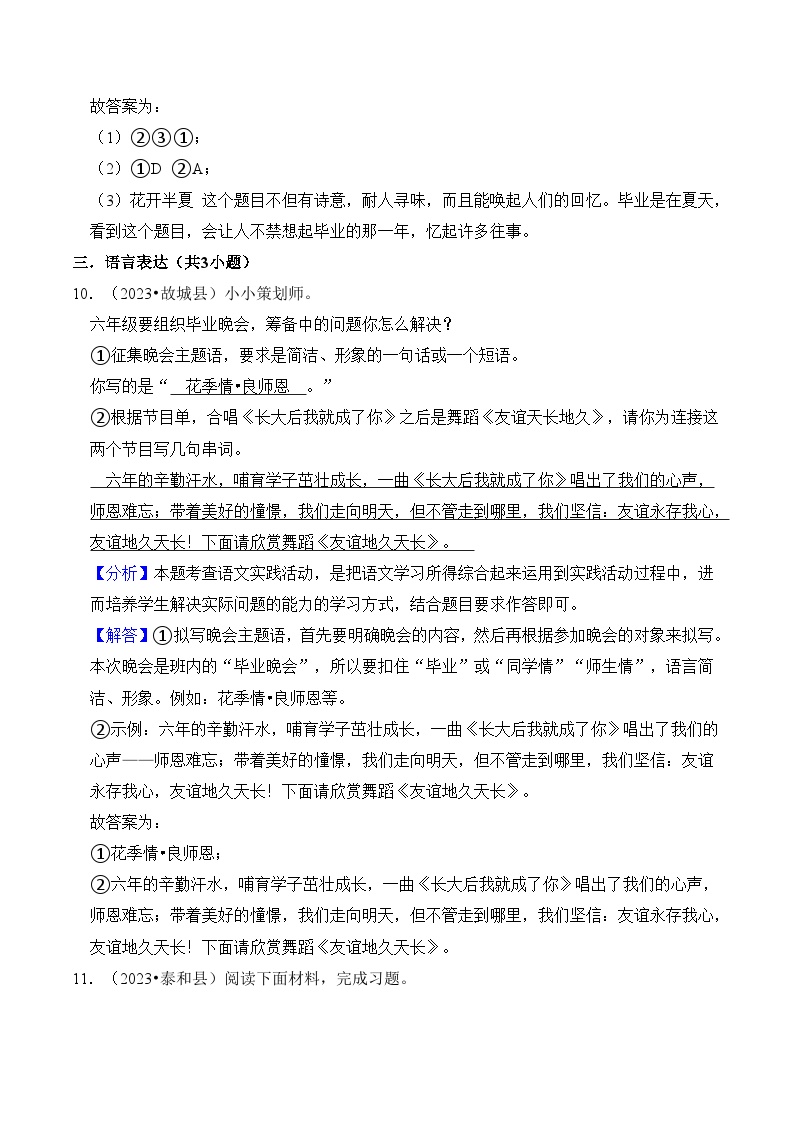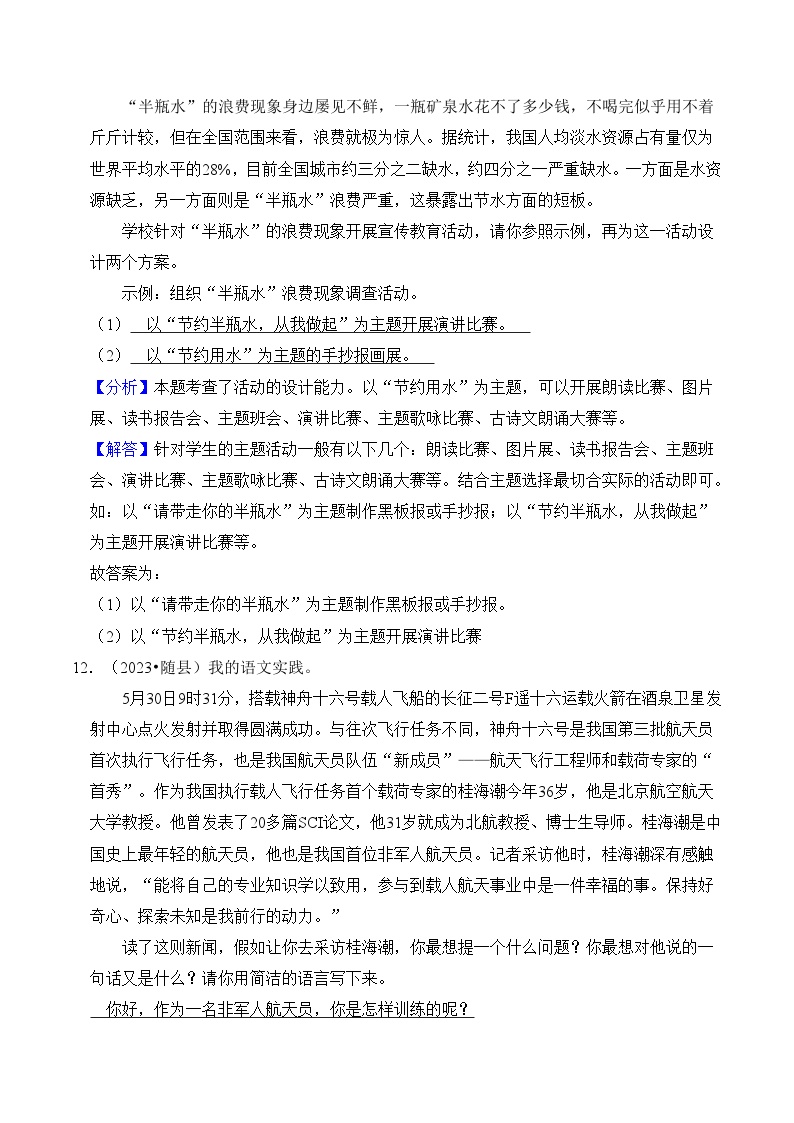 【小升初语文真题】专题15++综合性学习-2024小升初语文专项复习
