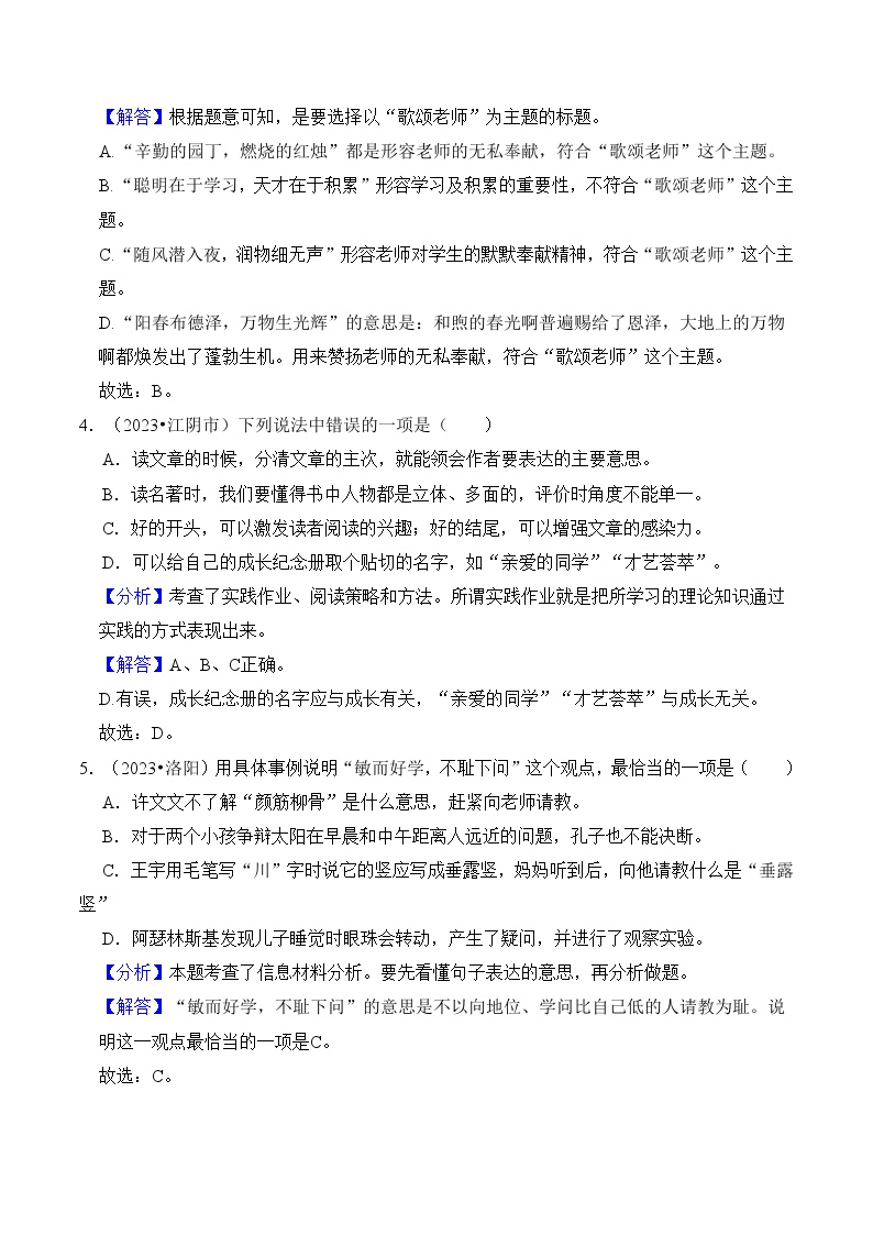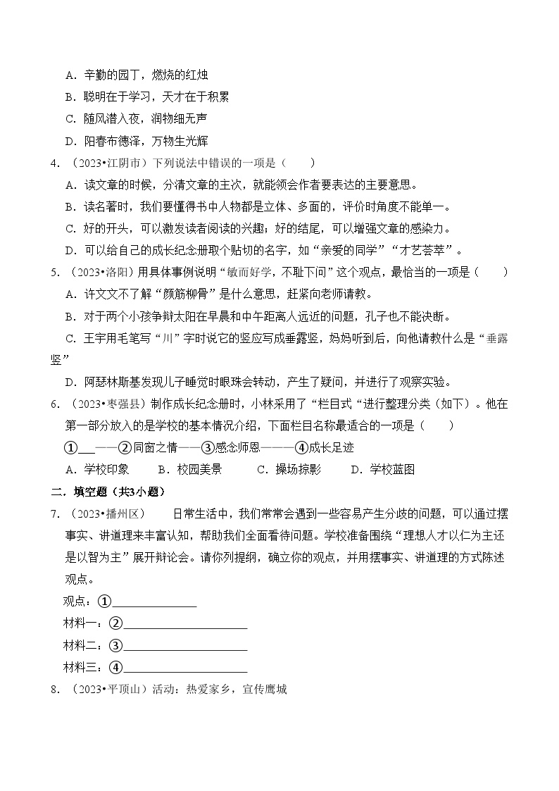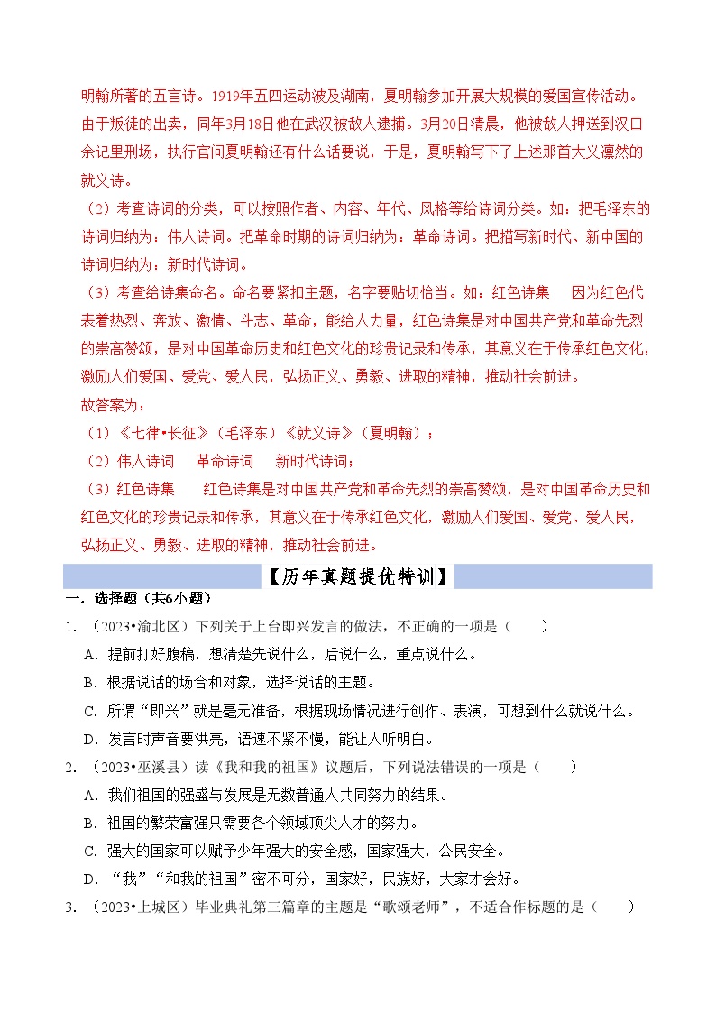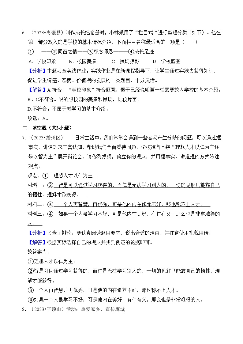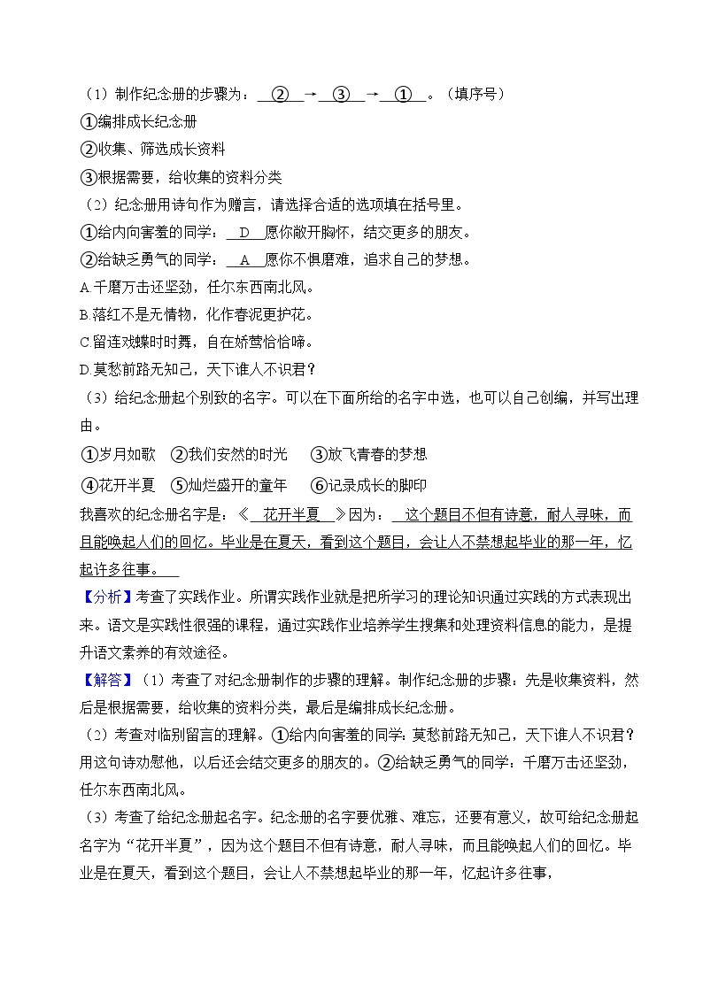 【小升初语文真题】专题15++综合性学习-2024小升初语文专项复习