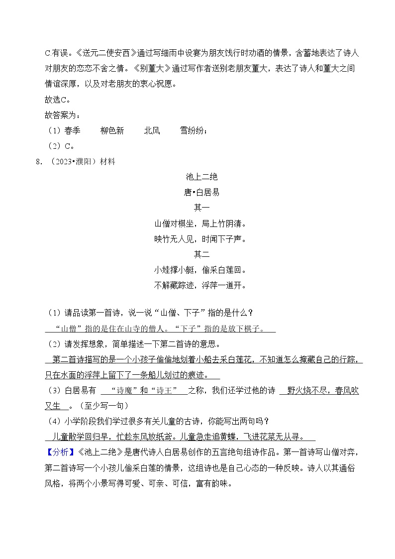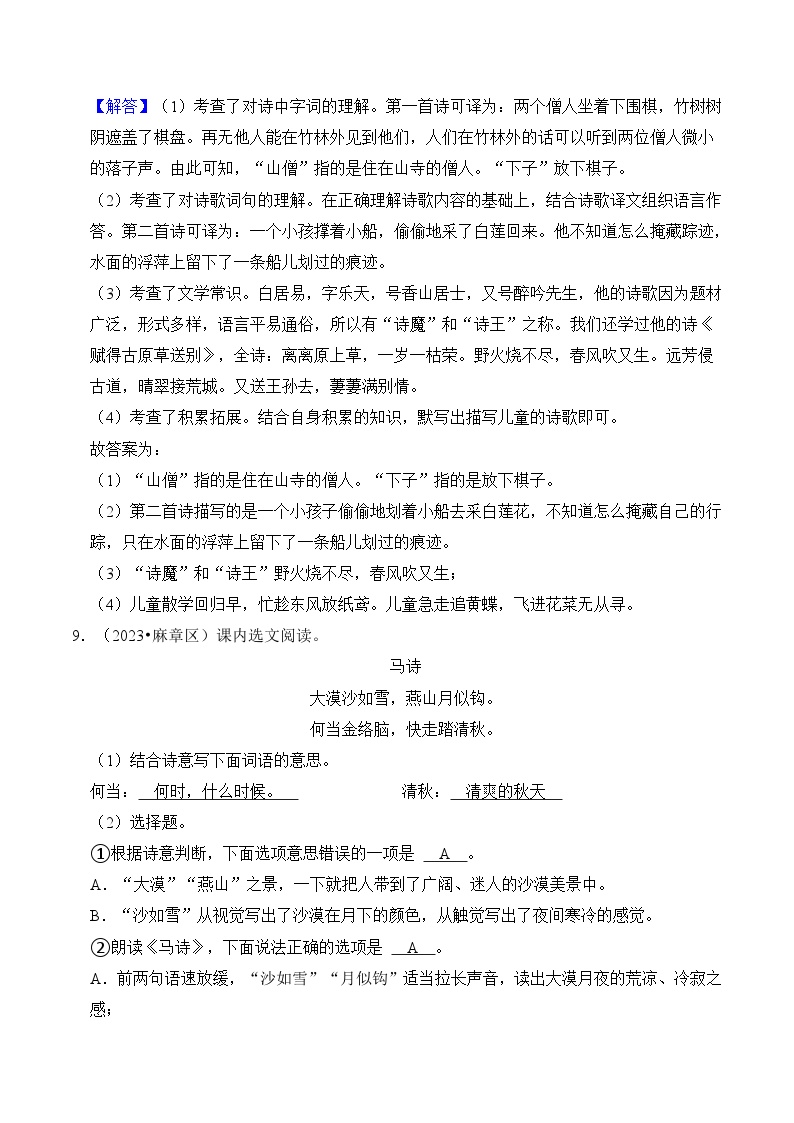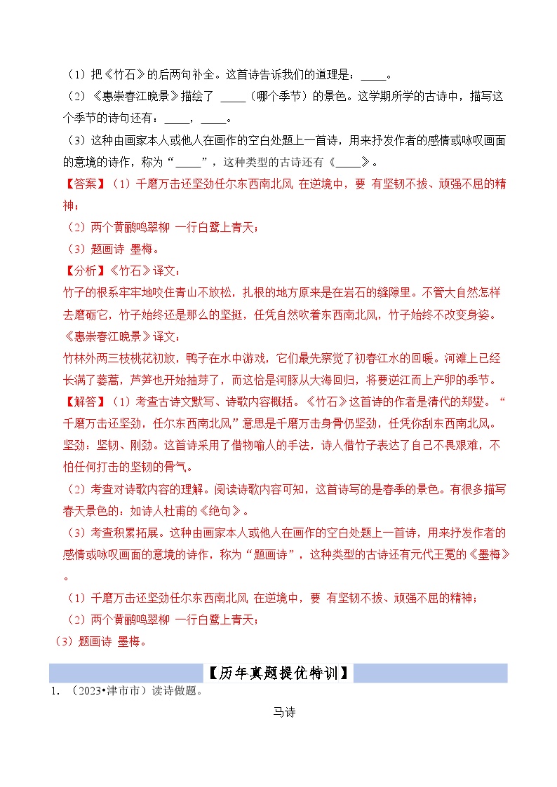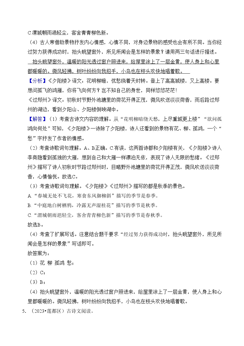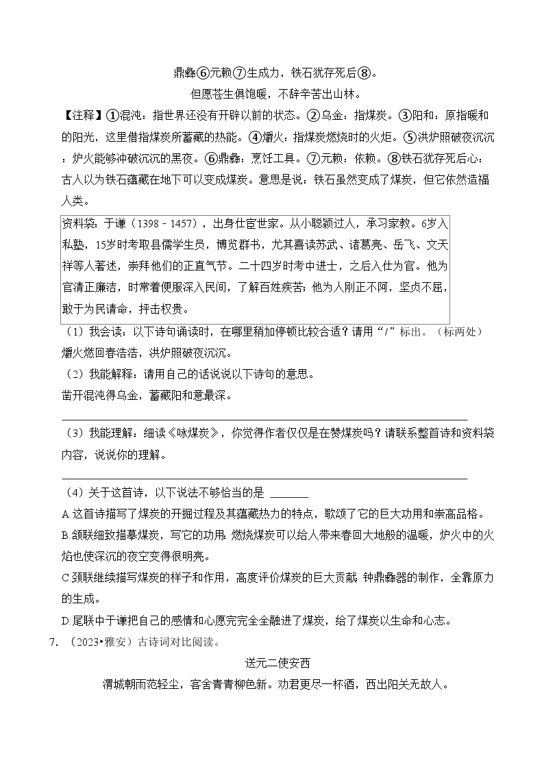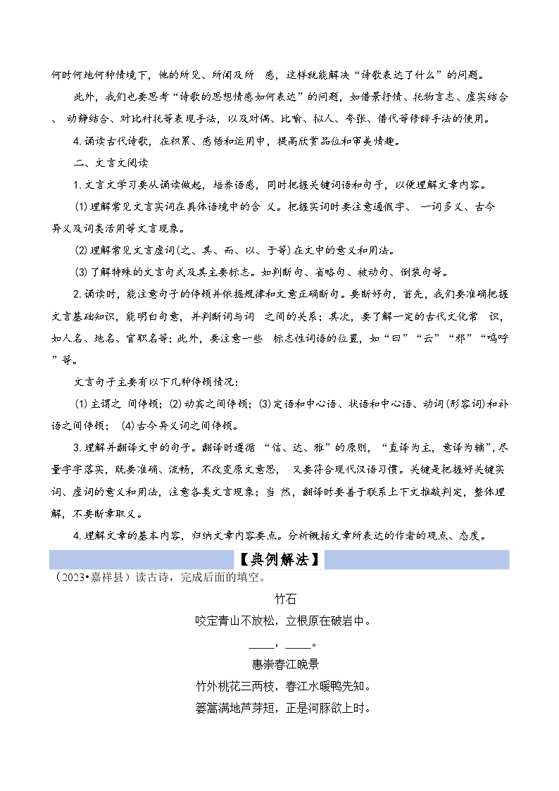 【小升初语文真题】专题19++古诗文阅读-2024小升初语文专项复习