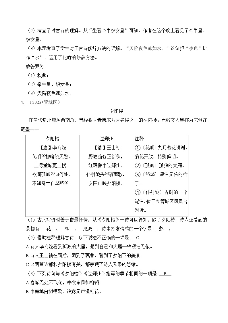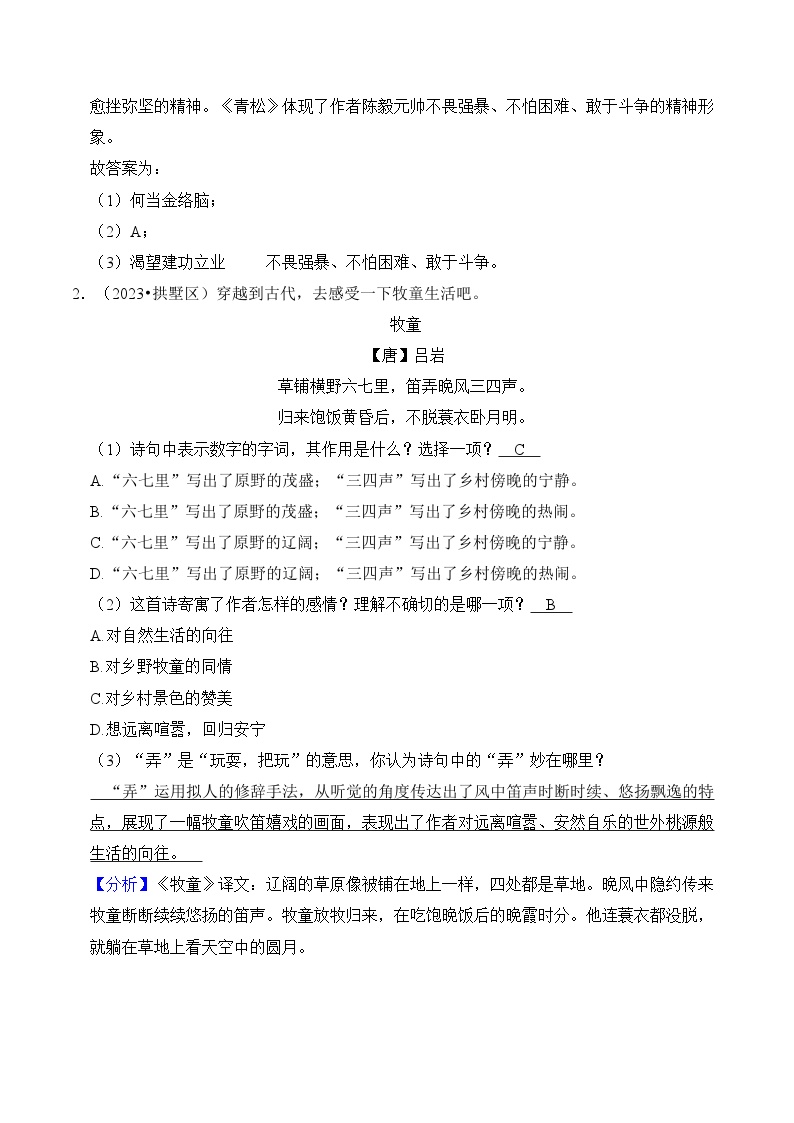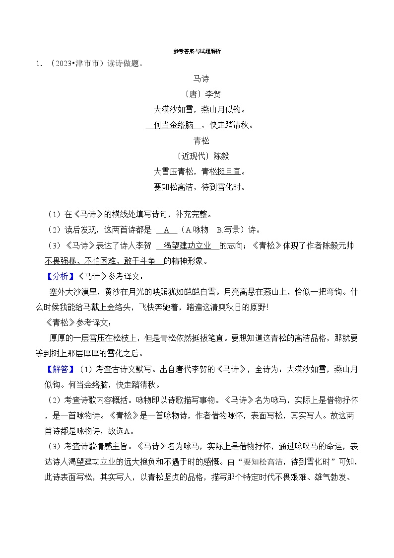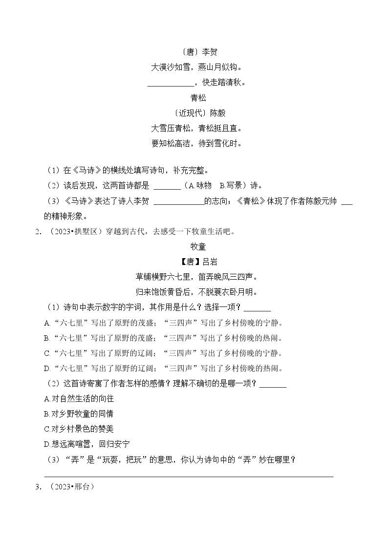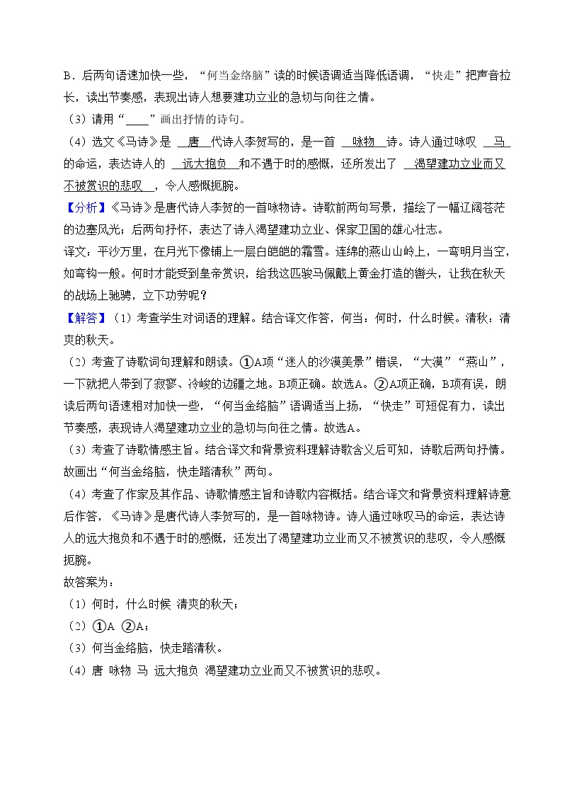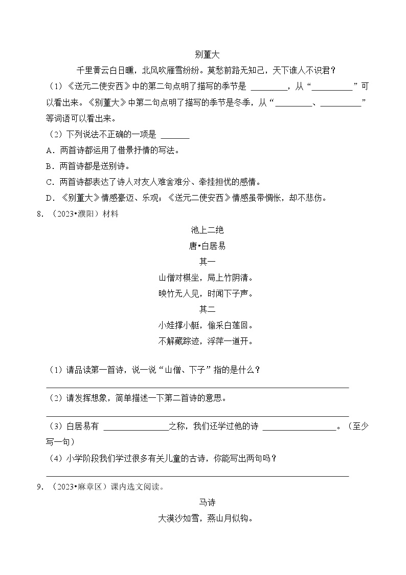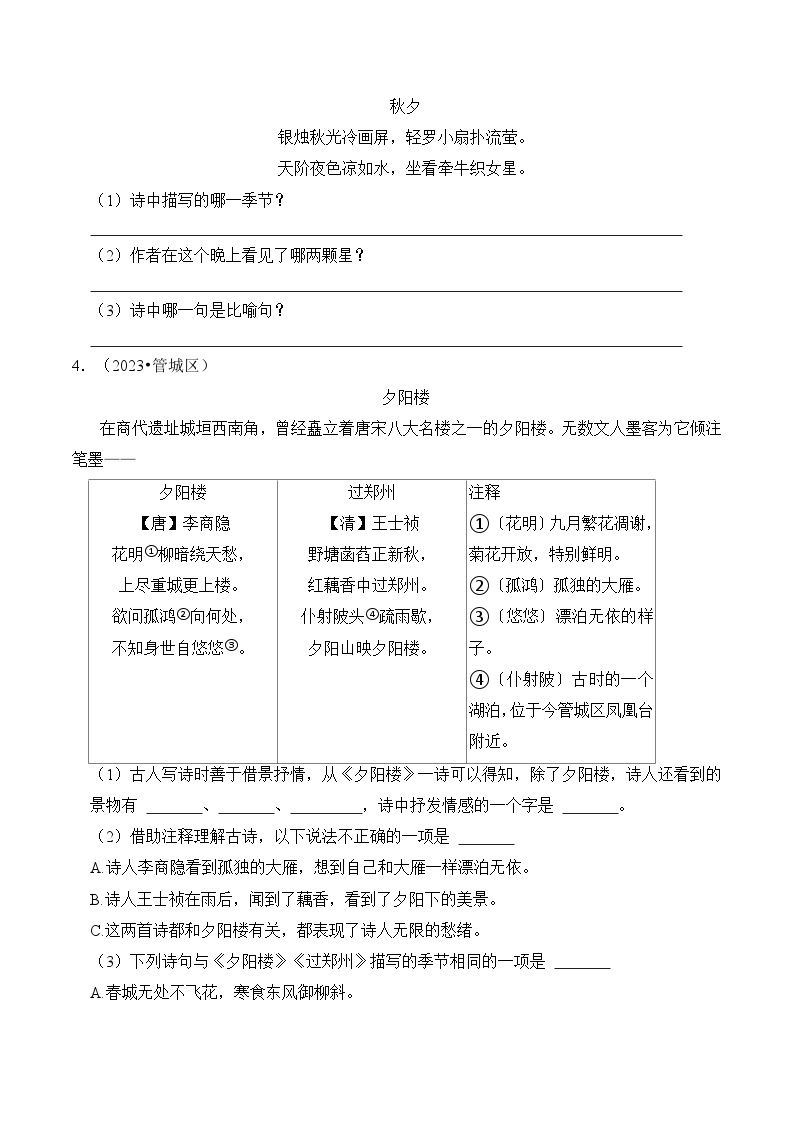 【小升初语文真题】专题19++古诗文阅读-2024小升初语文专项复习