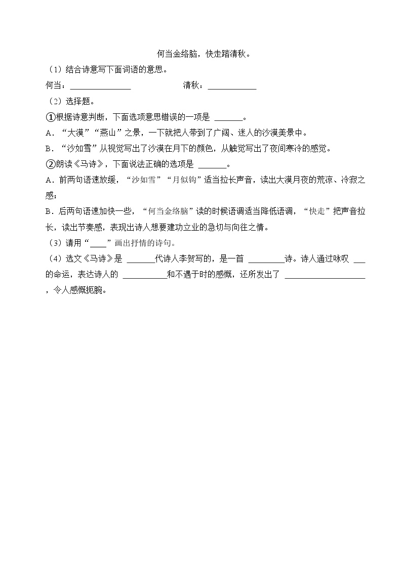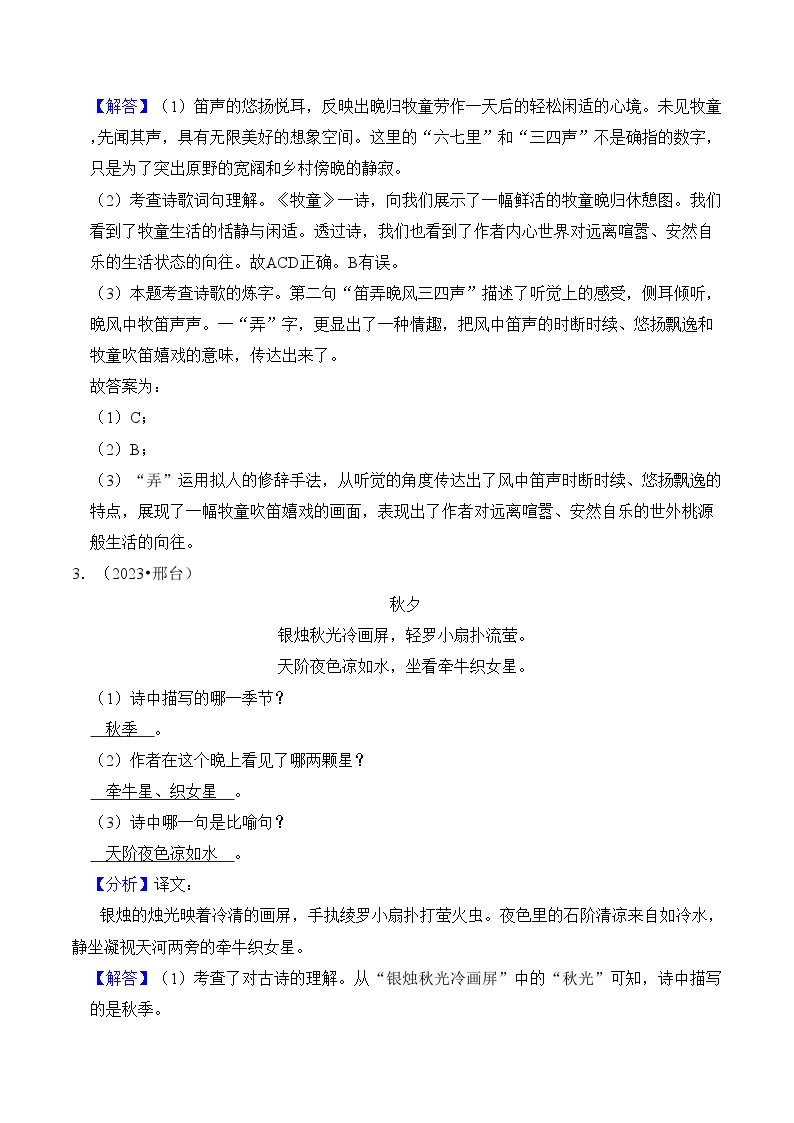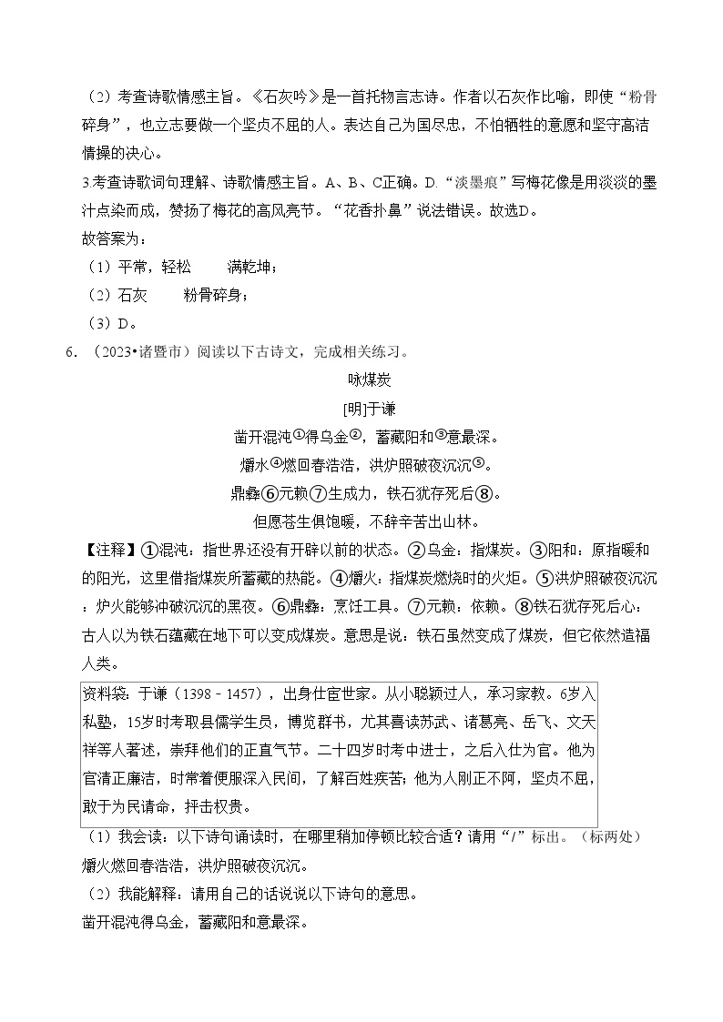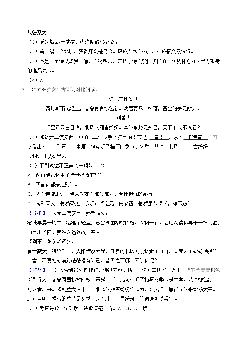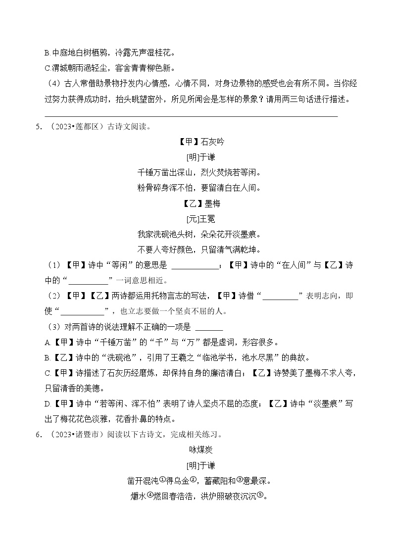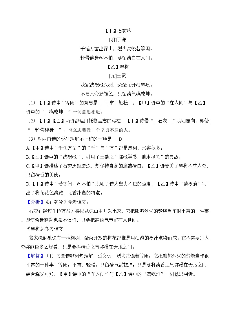 【小升初语文真题】专题19++古诗文阅读-2024小升初语文专项复习