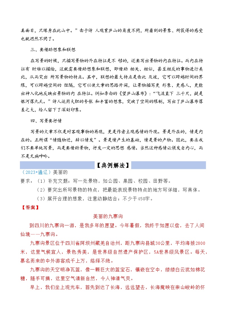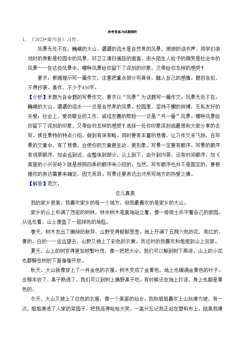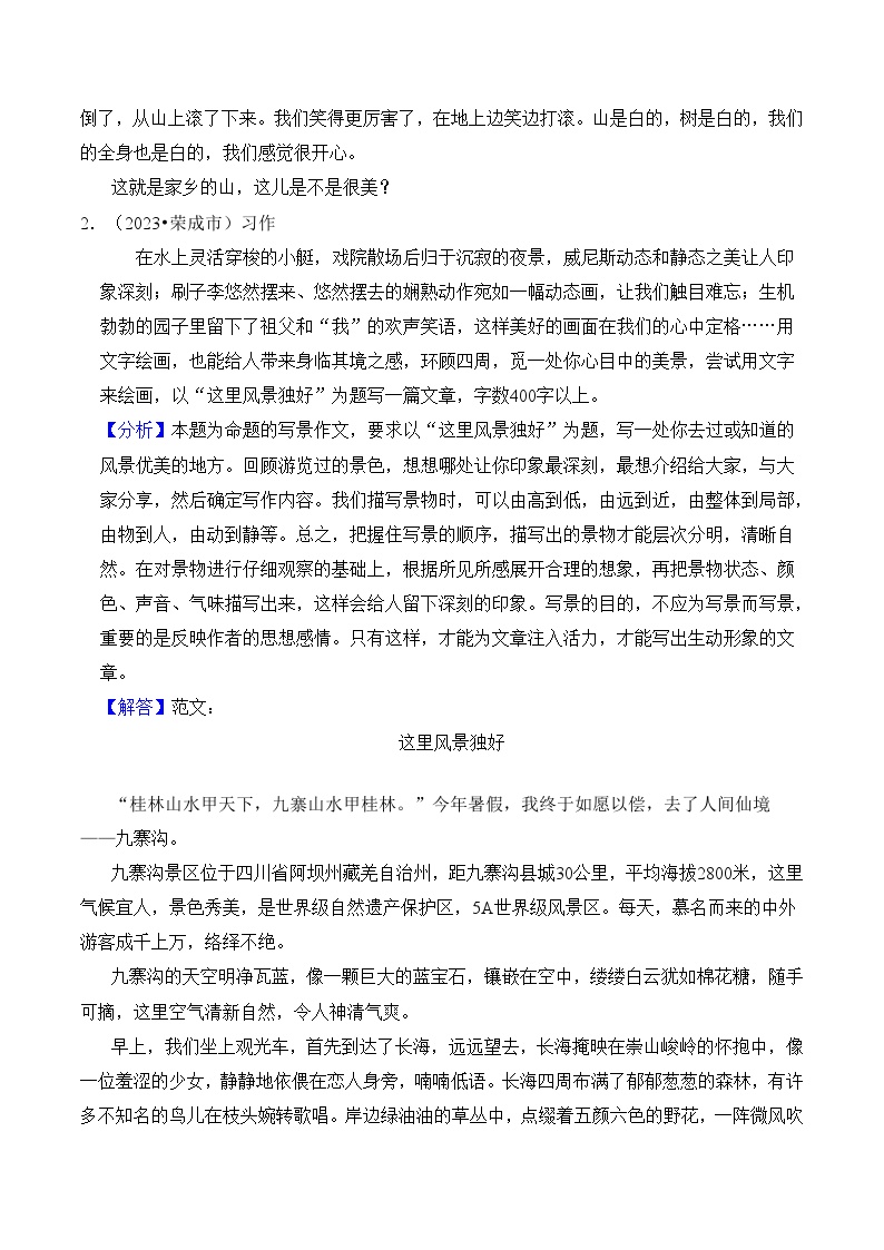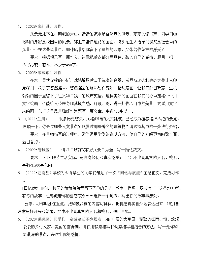 【小升初语文真题】专题23++记叙文写作(写景)-2024小升初语文专项复习
