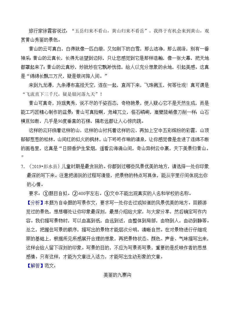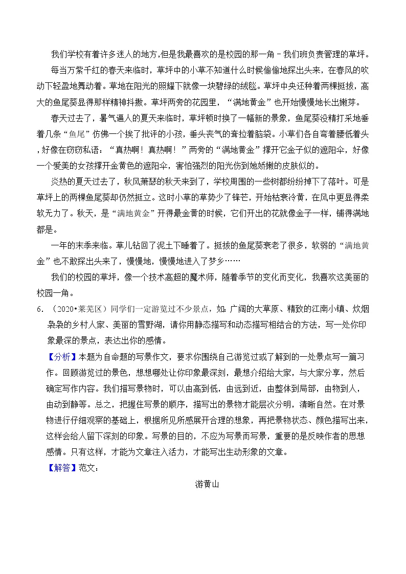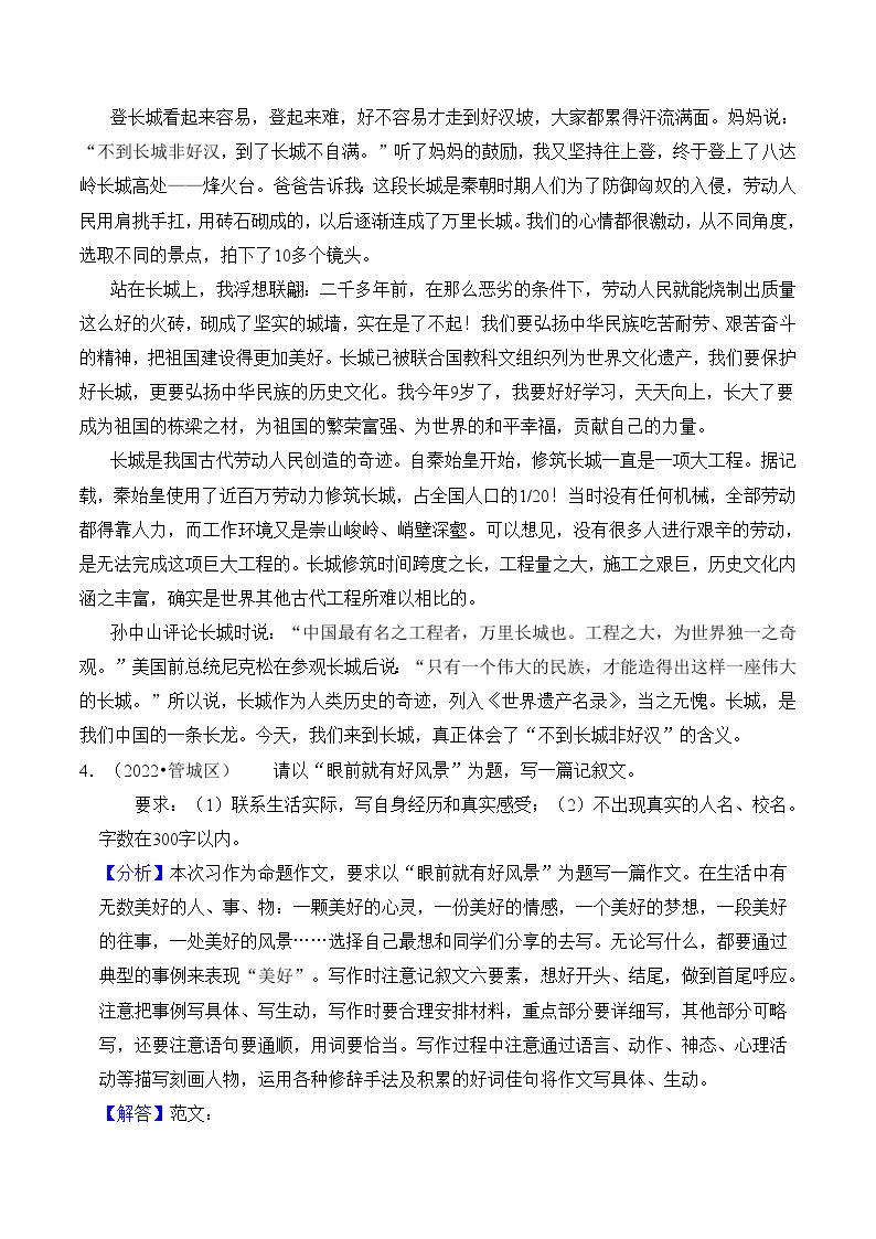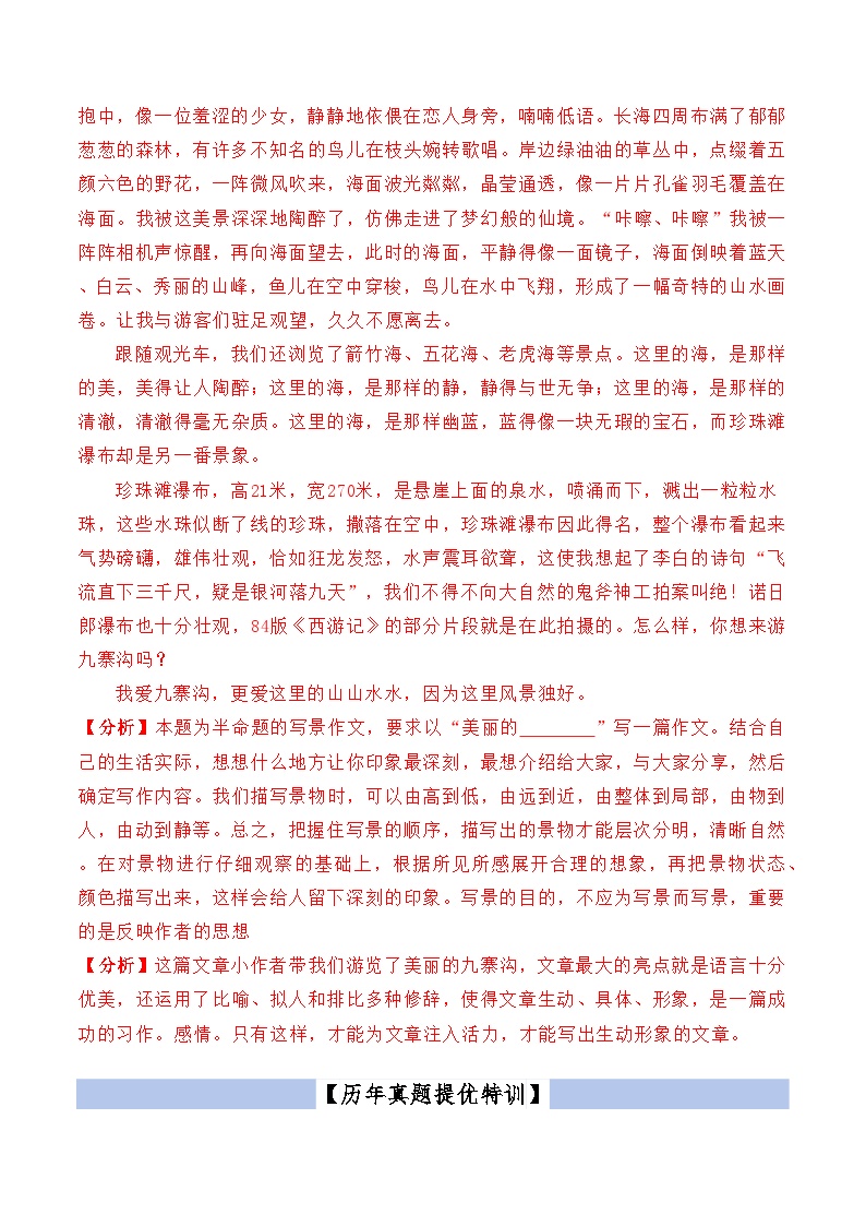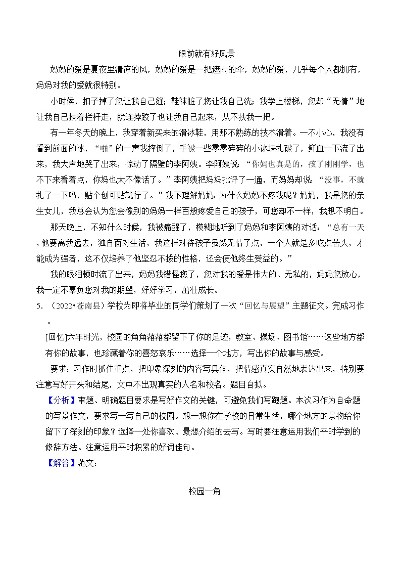 【小升初语文真题】专题23++记叙文写作(写景)-2024小升初语文专项复习