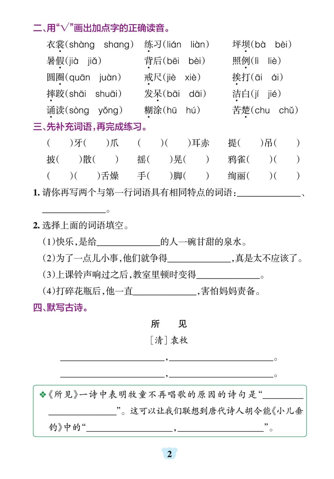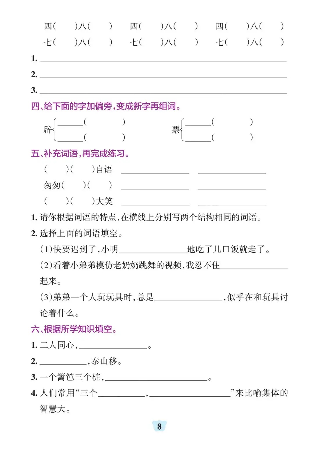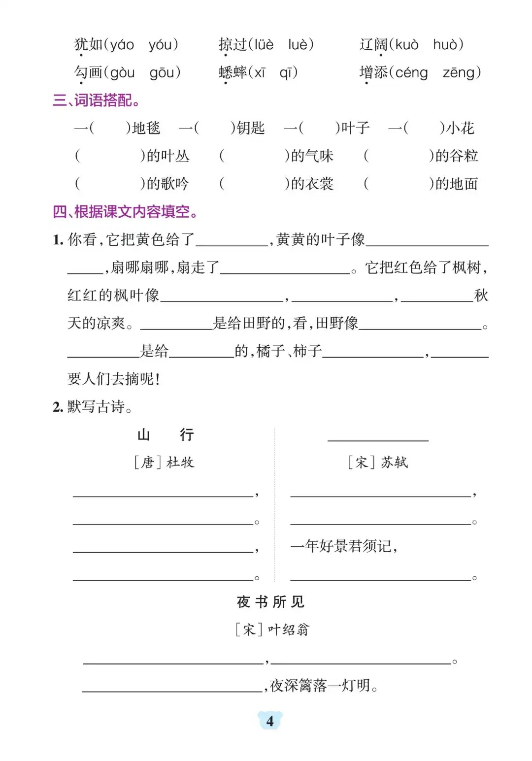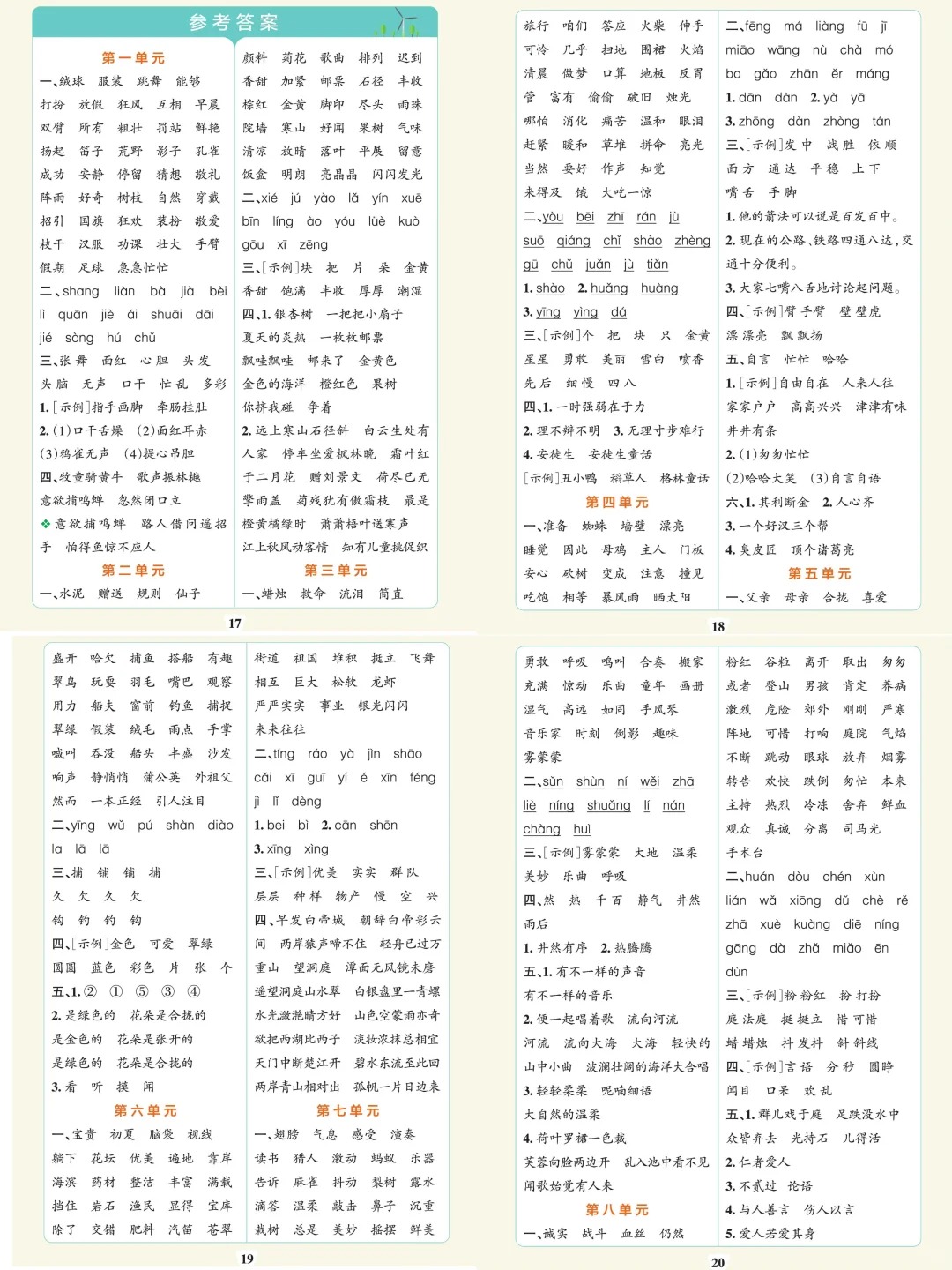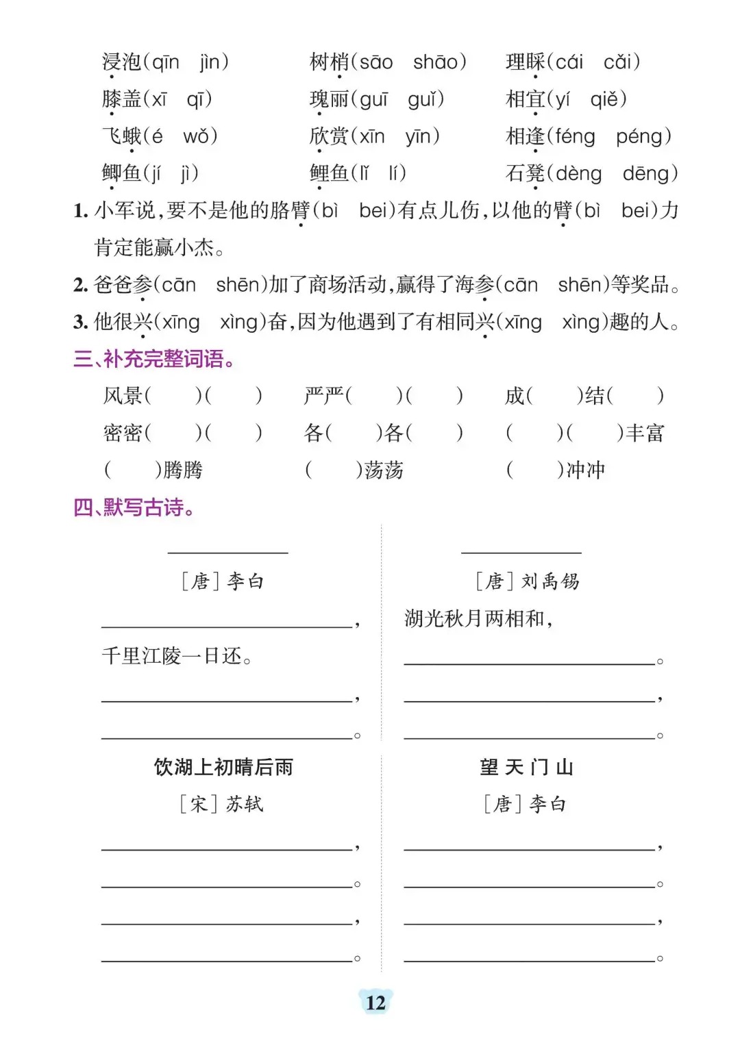 三年级上册语文1-8单元默写通关