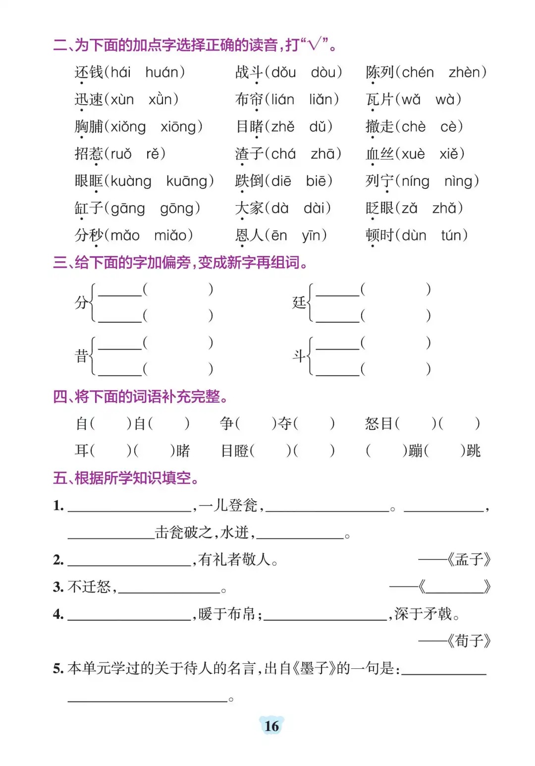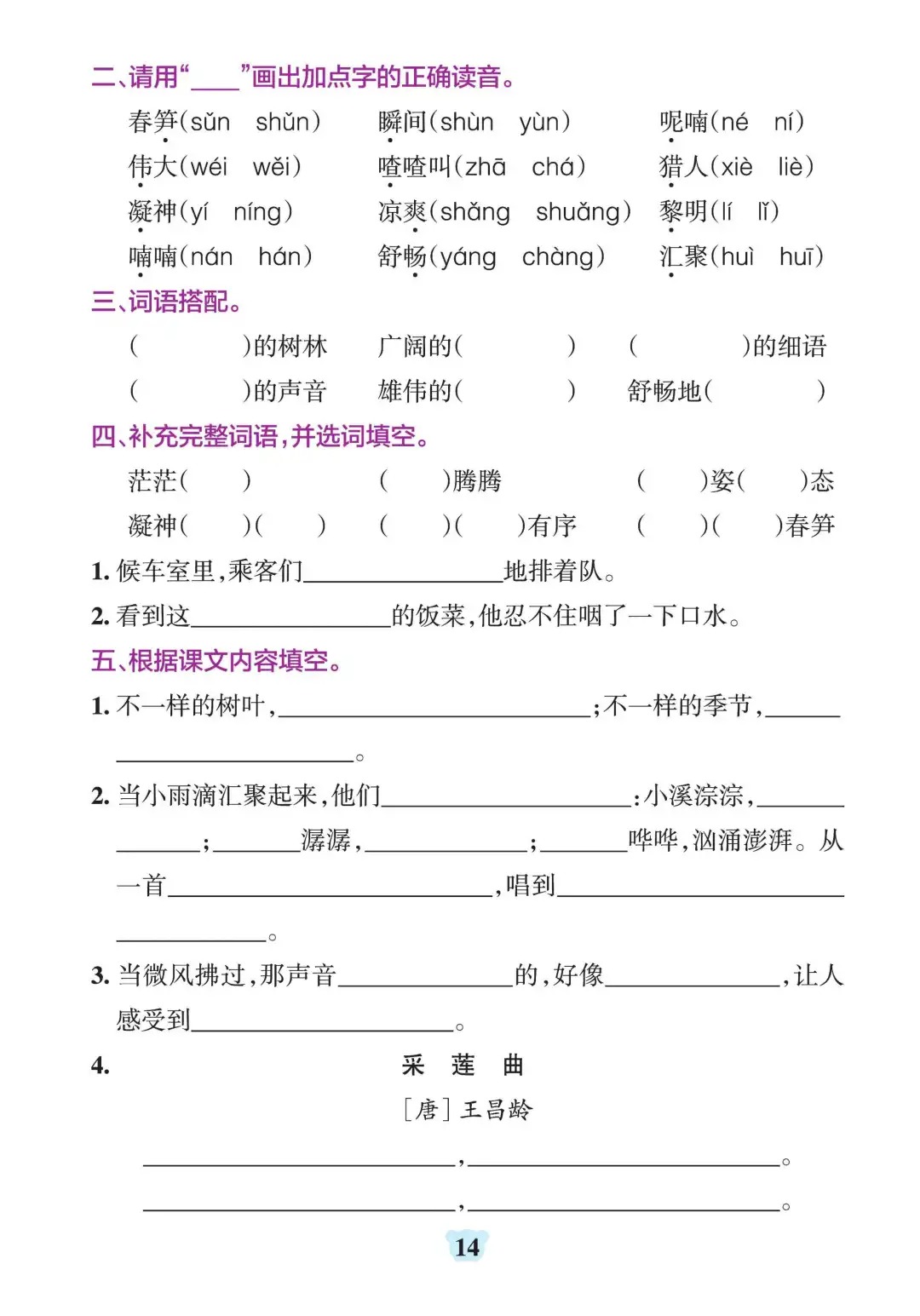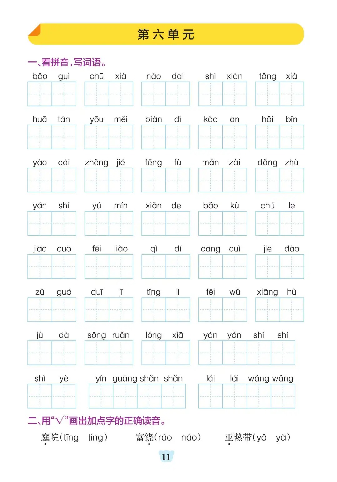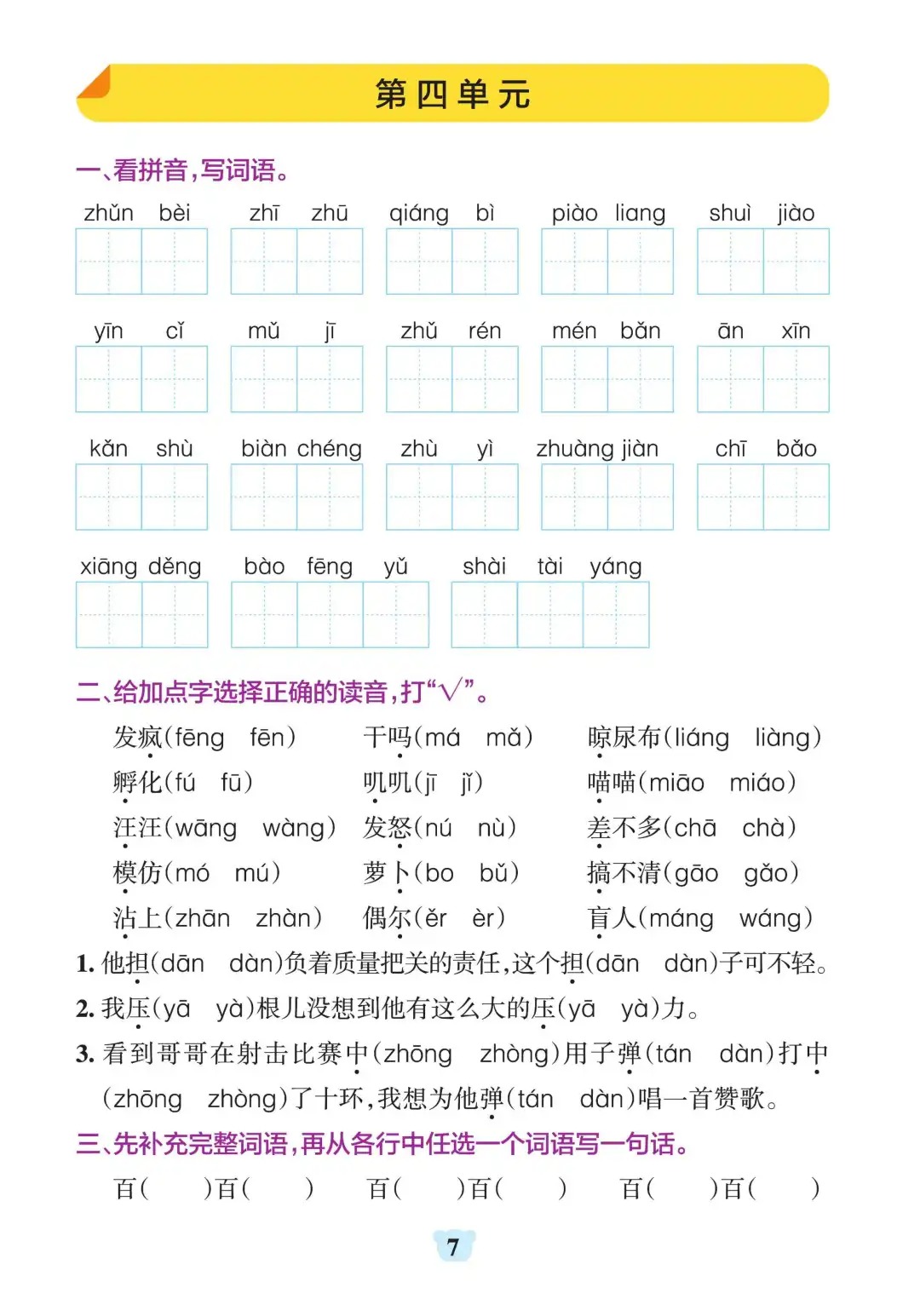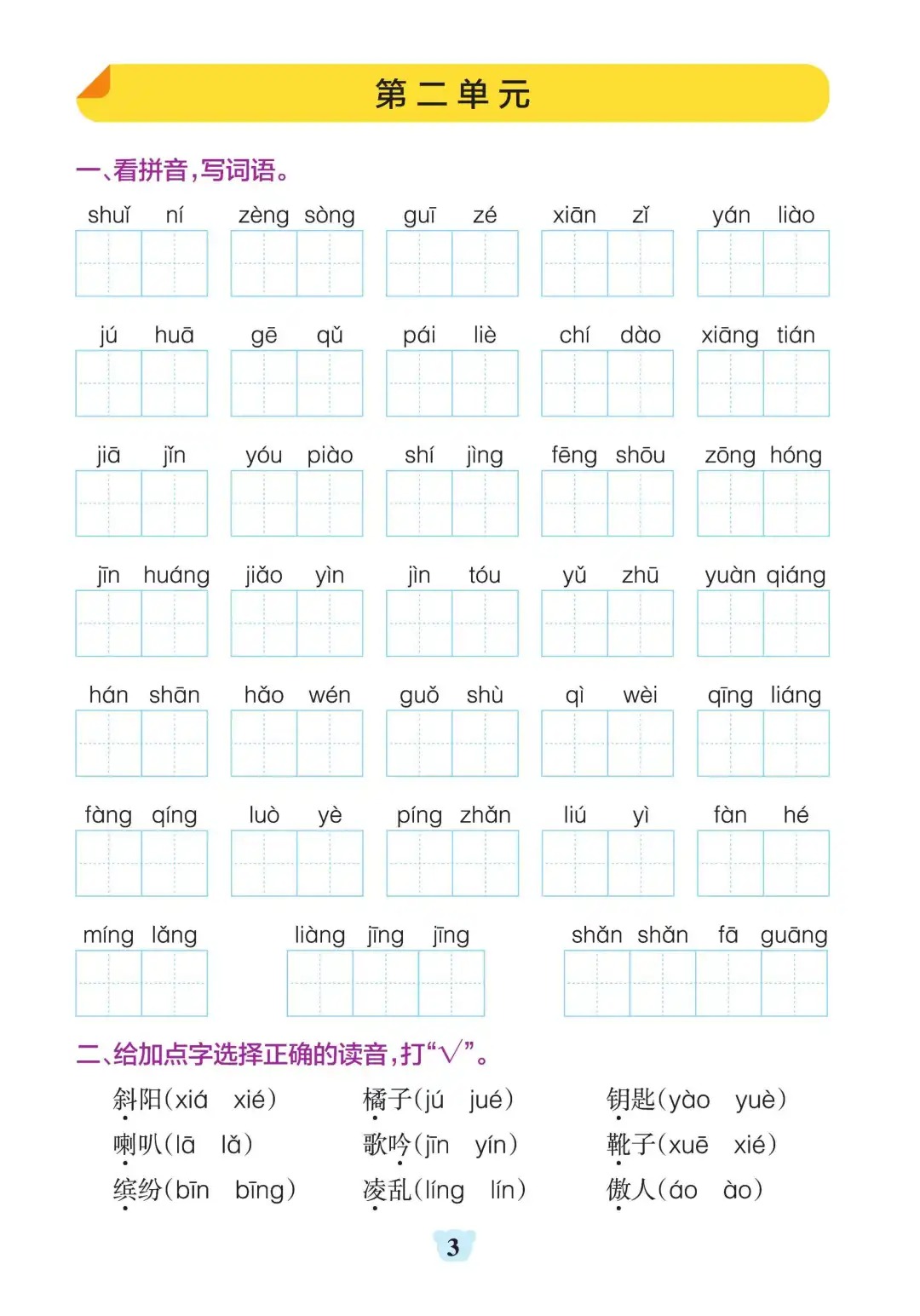 三年级上册语文1-8单元默写通关